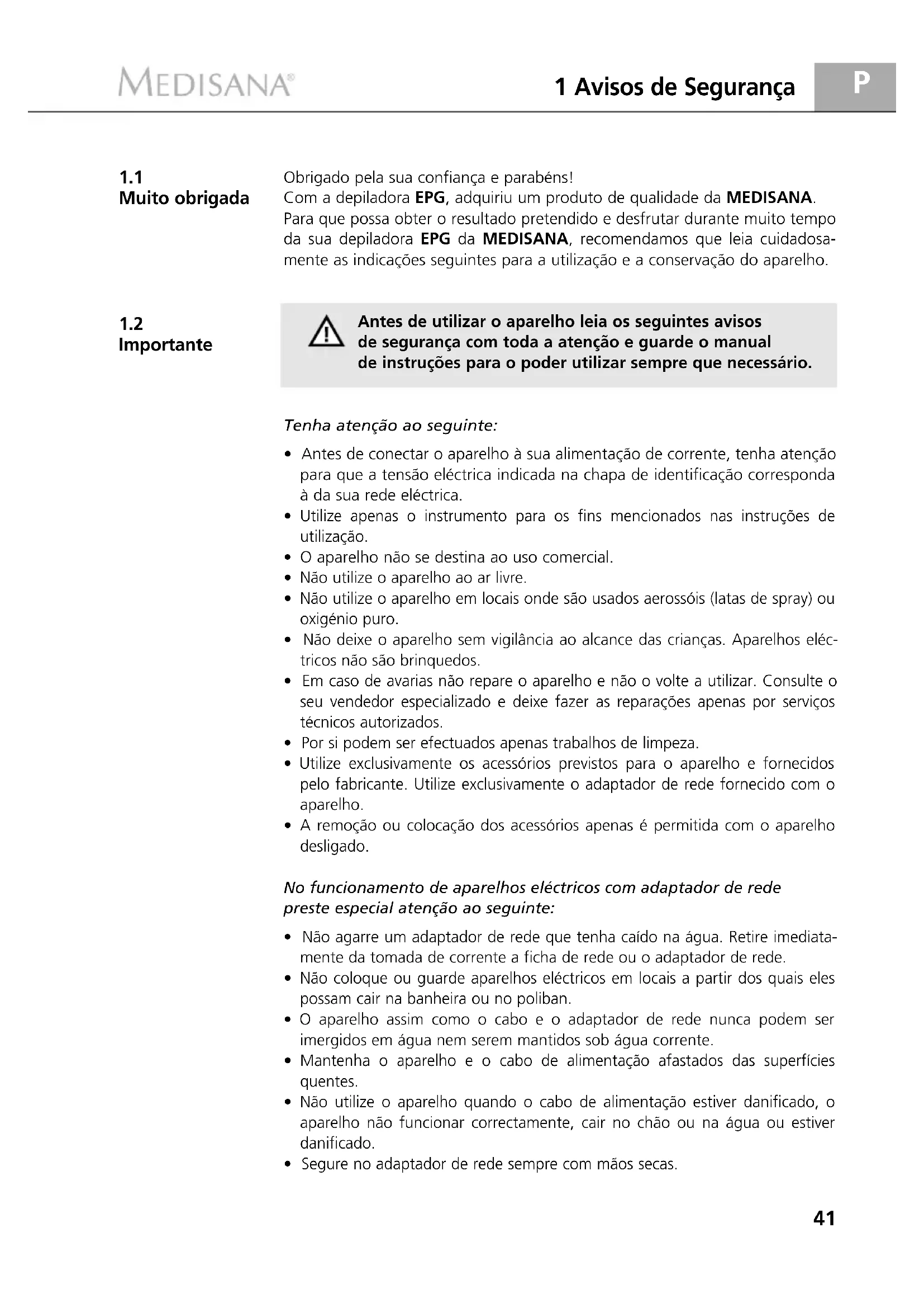 Para que possa obter o resultado pretendido e desfrutar durante muito tempo da sua depiladora EPG da MEDISANA, recomendamos que leia cuidadosamente as indicações seguintes para a utilização e a conservação do aparelho.