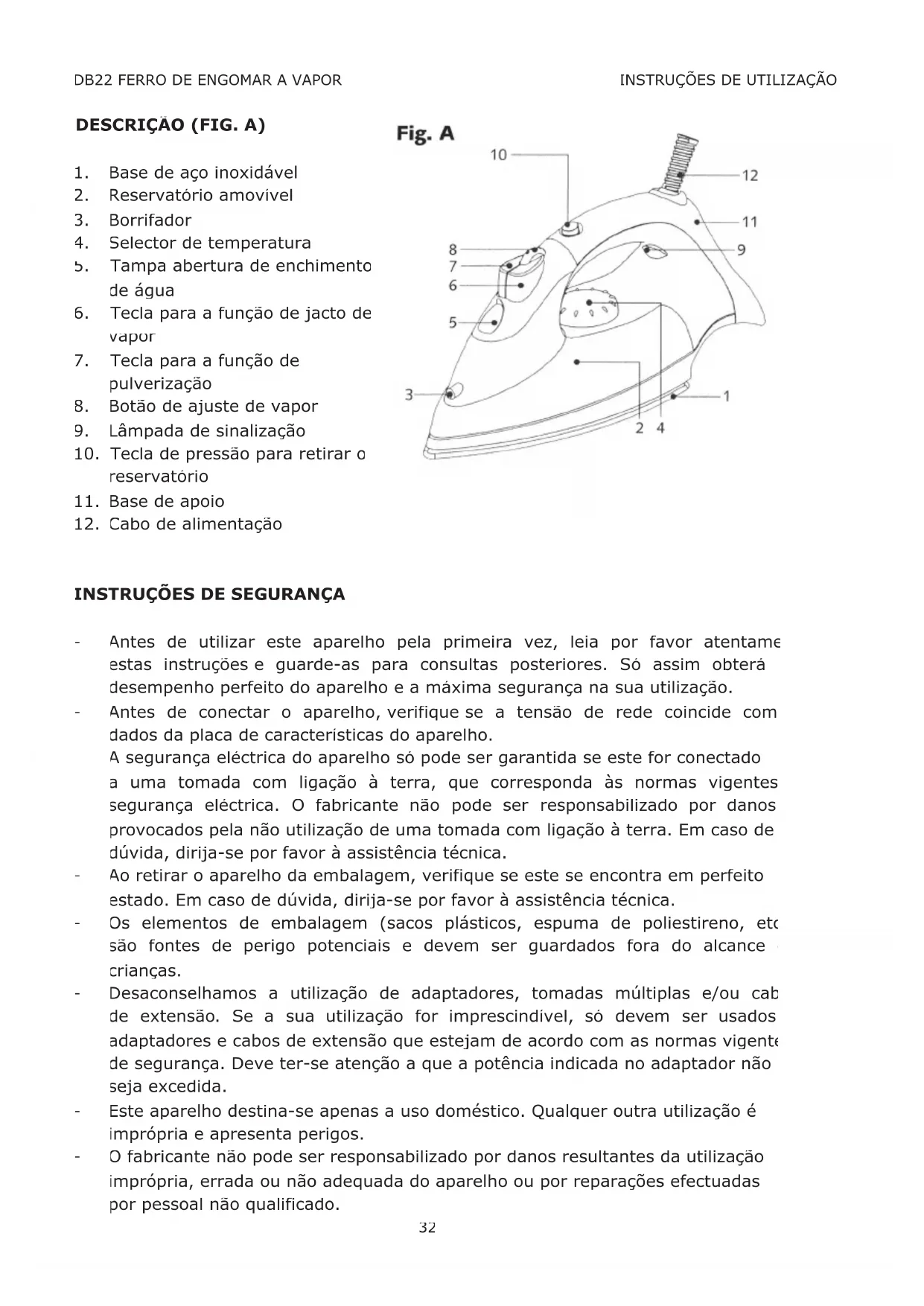 DB22 - Ferro de passar Soba - Manual de utilização gratuito