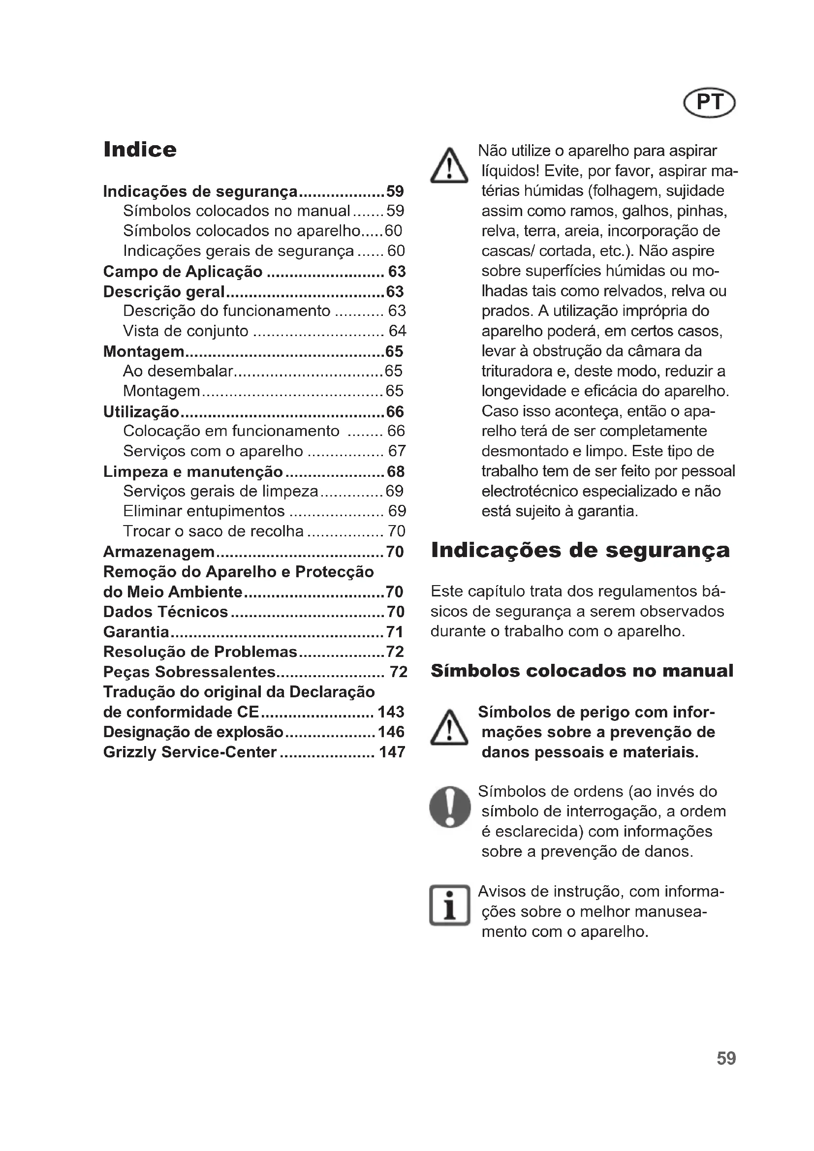 Indicações de segurança 59