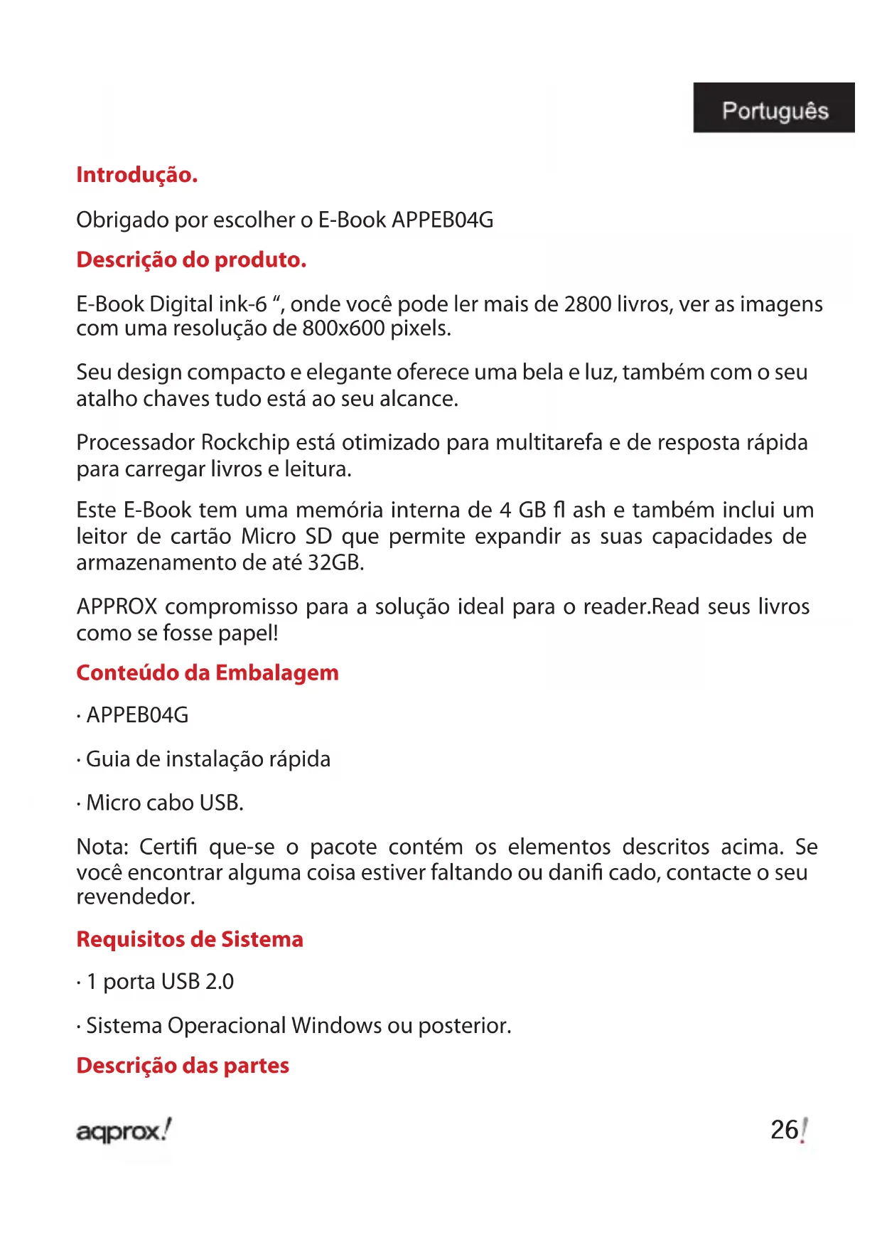 APPEB04G - Leitor eletrônico Approx - Manual de utilização gratuito