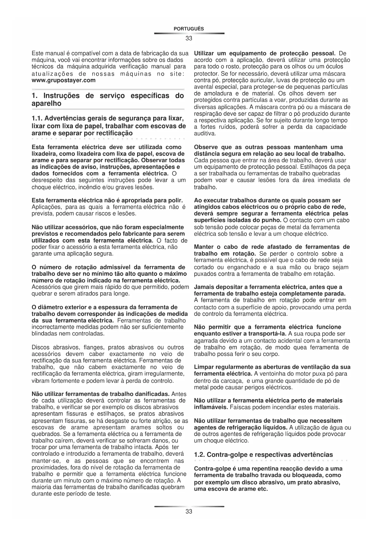1.3. Instruções especialis de segurarasi específicas para lixare separar por rectificacao