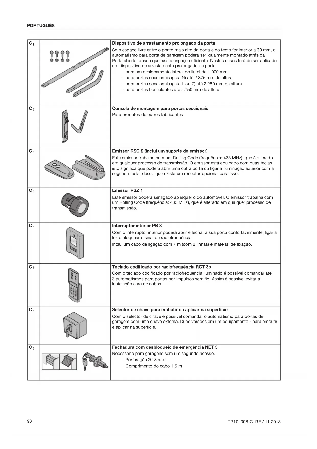 - C Acessórios para o automatismo para portas de garagem p. 98