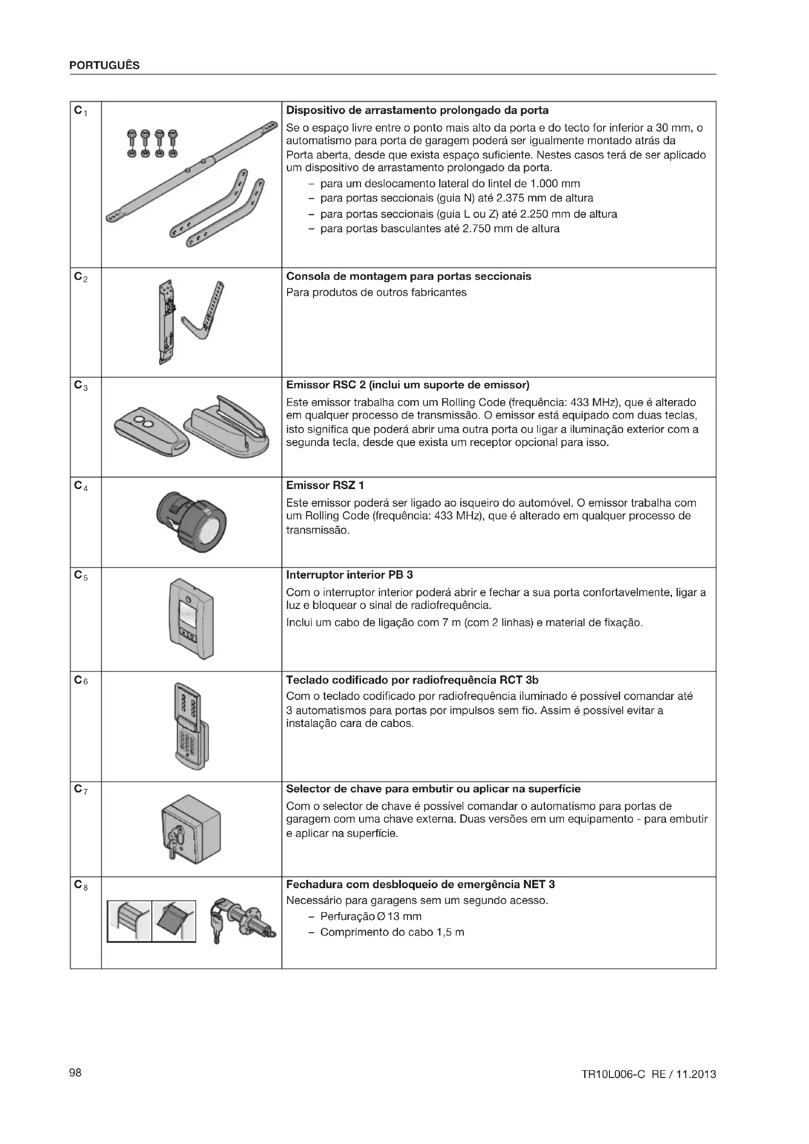 - C Acessórios para o automatismo para portas de garagem p. 98