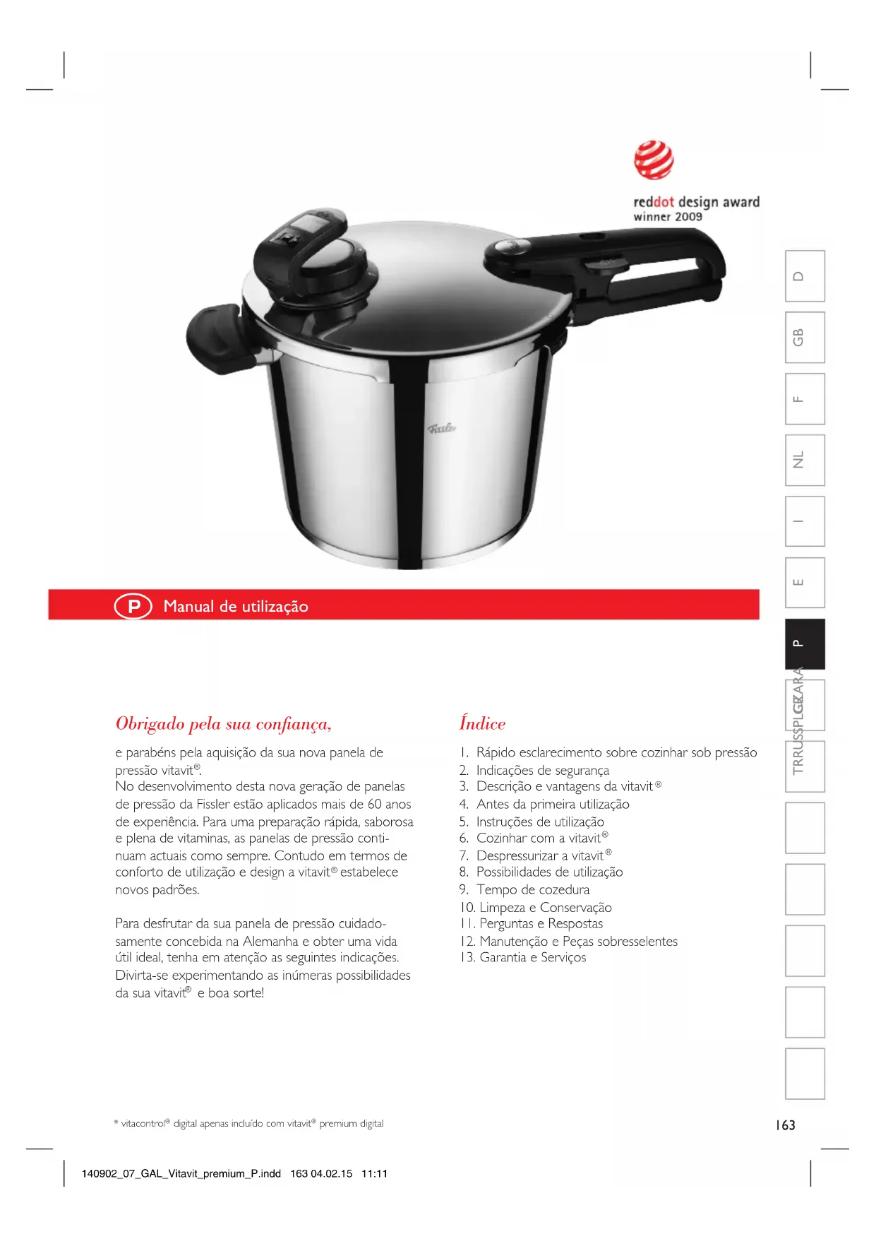 MANUAL DE UTILIZADOR Vitavit Premium Digital Fissler