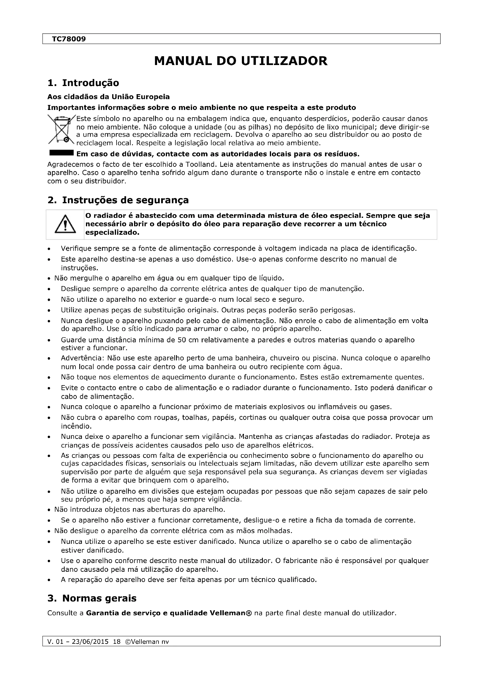 Utilize este aparelho apenas com acessórios originais. A Velleman NV não sera responsavel por quaisquer danos ou lesões causados pelo uso (indevido) do aparelho. Para mais informação sobre este produit e para aceder à versão mais recente deste manual do utilizesdor, visite a minha网页 www.toolland.eu. Podem alterar-se as espécicações e o conteudo destemanual sem征求意见.
