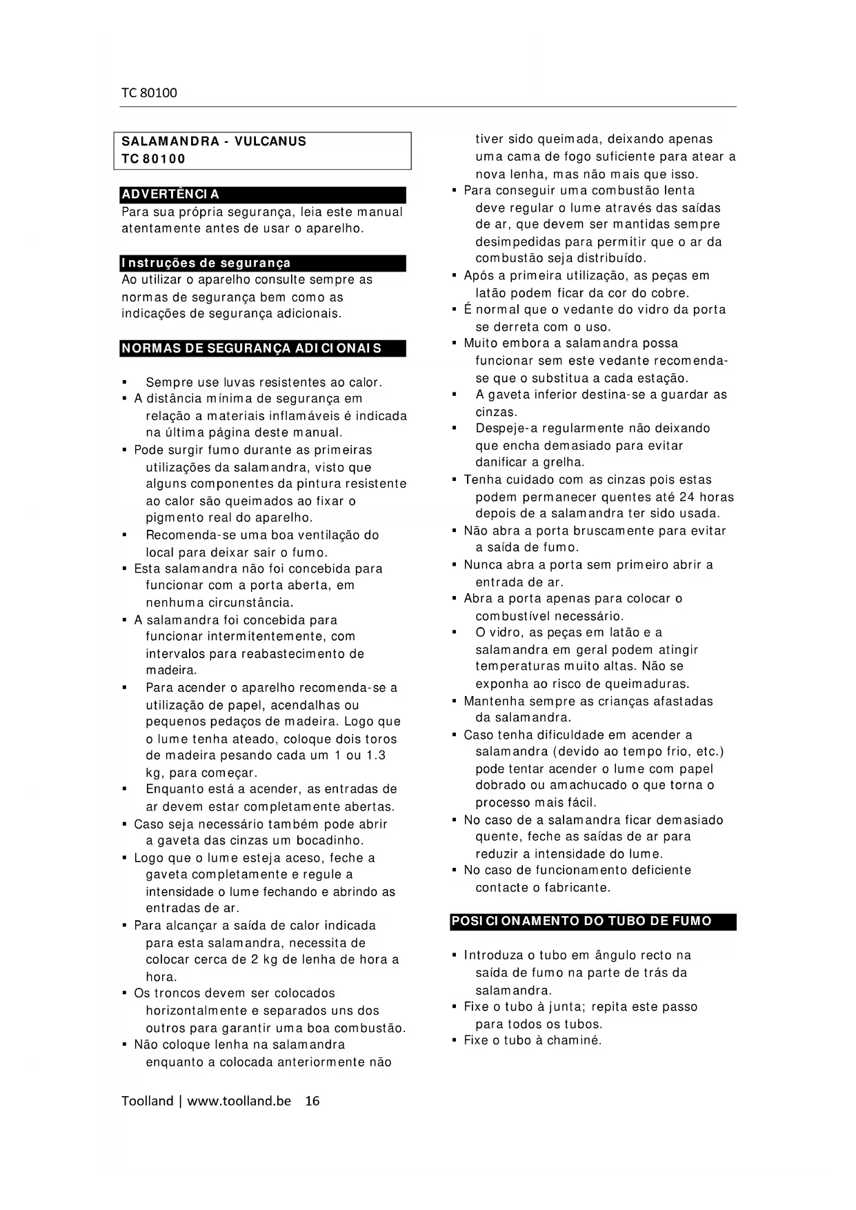 Encontre gratuitamente o manual do aparelho TC80100 Toolland em formato PDF.