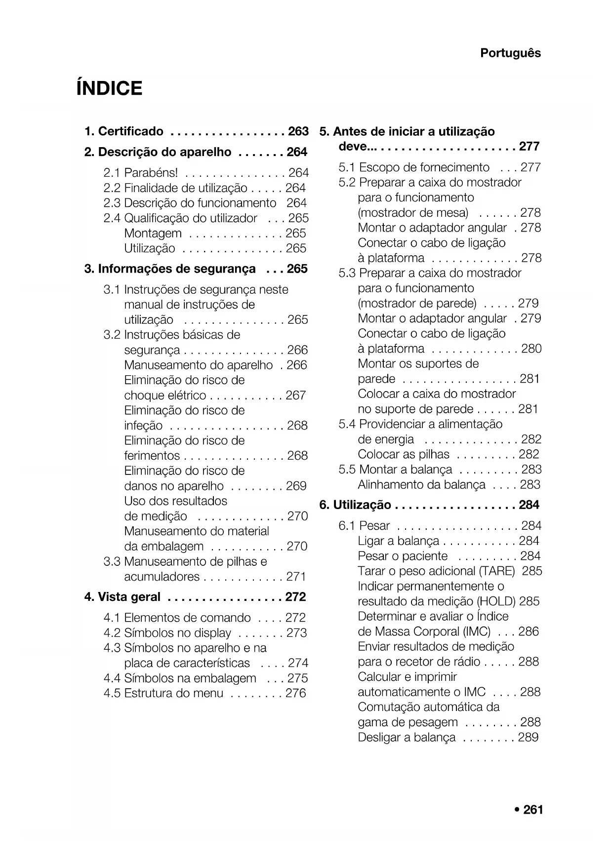 3.1 Instruções de segurarça nestemanual de instruções deutilização 265
