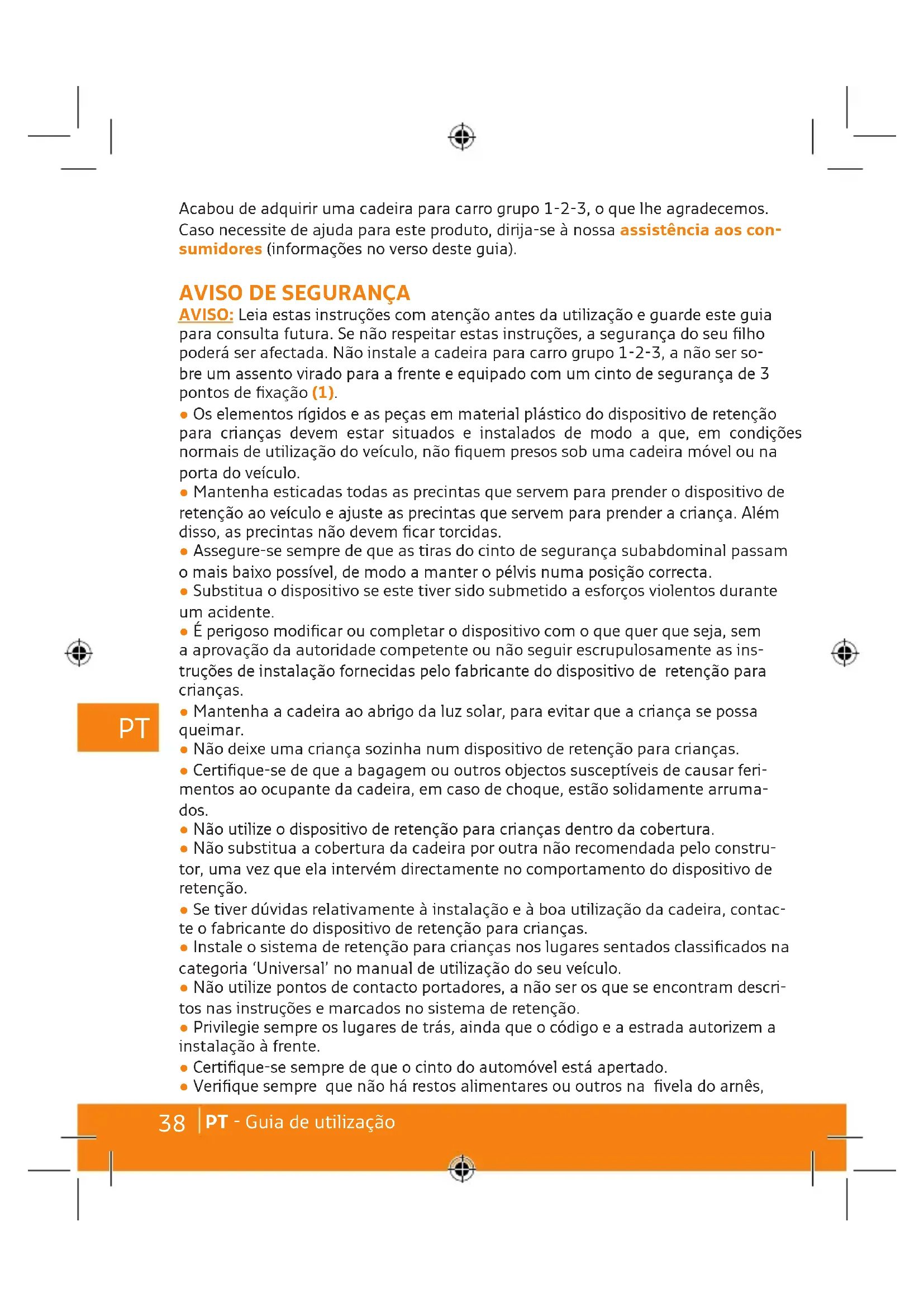 Acabou de adquirir uma cadeira para carro grupo 1-2-3, o que lhe agradecemos. Caso necessite de ajuda para este produto, dirija-se à nossa assistência aos con- sumidores (informações no verso deste guia).