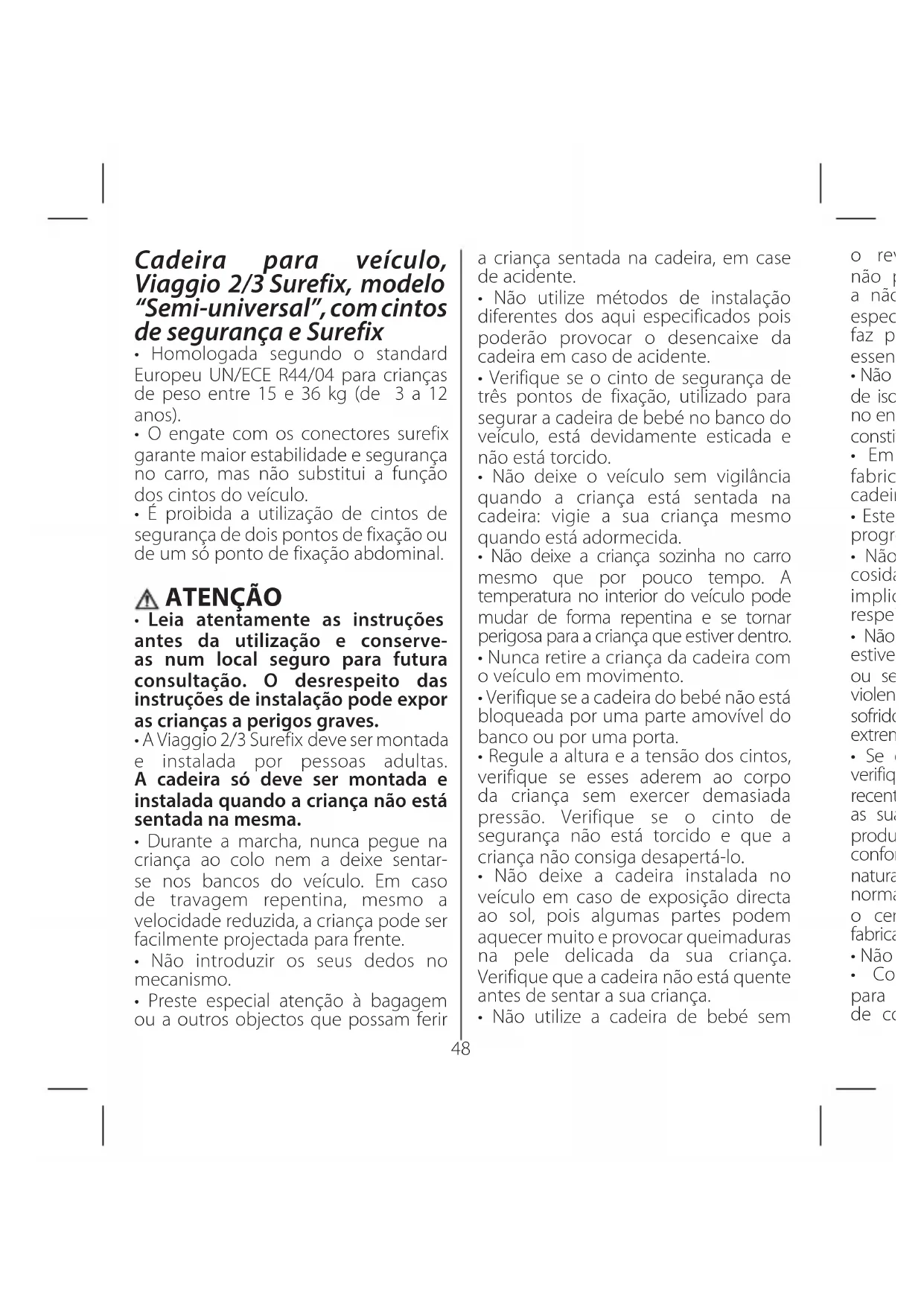 - É proibida a utilização de cintos de segurança de dois pontos de fixação ou de um só ponto de fixação abdominal.48 Cadeira para veículo, Viaggio 2/3 Surefix, modelo “Semi-universal”, com cintos de segurança e Surefix