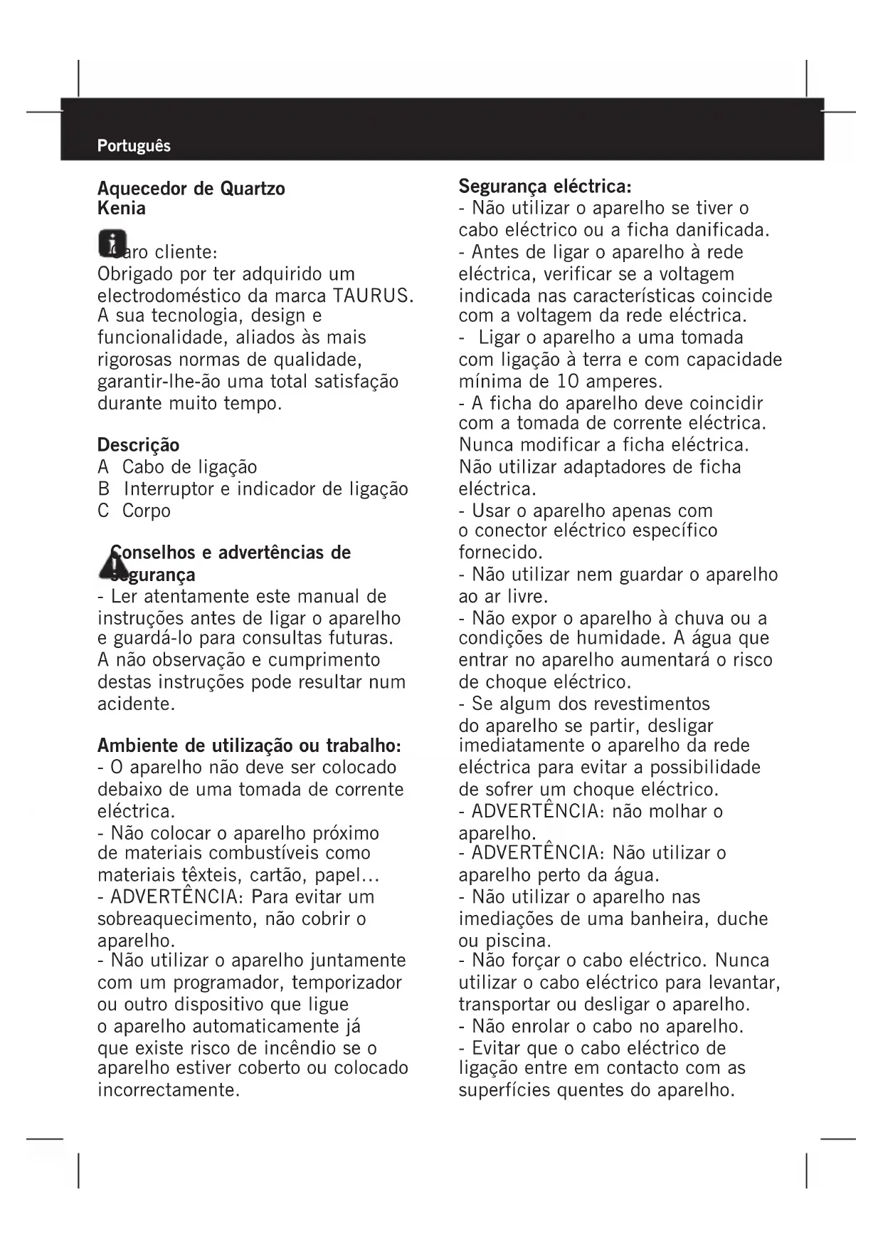 MANUAL DE UTILIZADOR Kenia TAURUS
