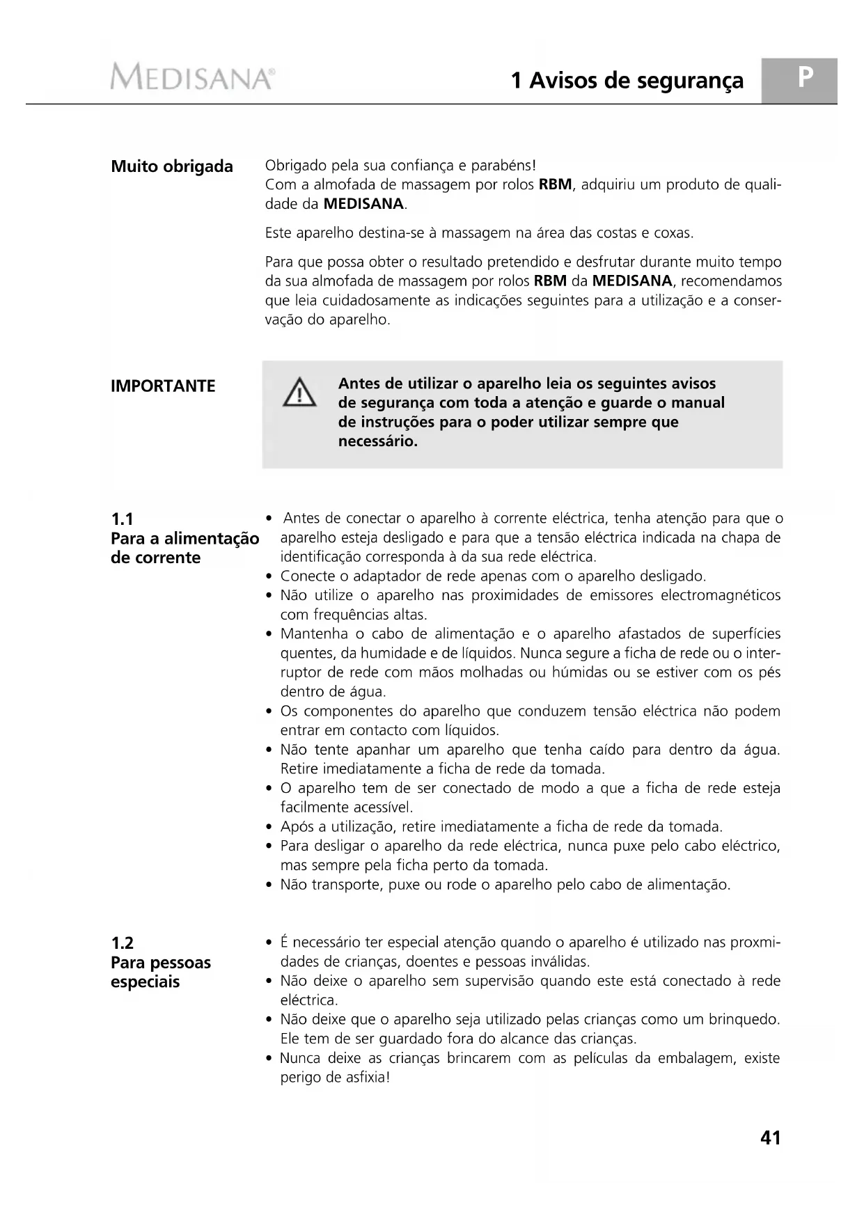 Para que possa obter o resultado pretendido e desfrutar durante muito tempo da sua almofada de massagem por rolos RBM da MEDISANA, recomendamos que leia cuidadosamente as indicações seguintes para a utilização e a conservação do aparelho.