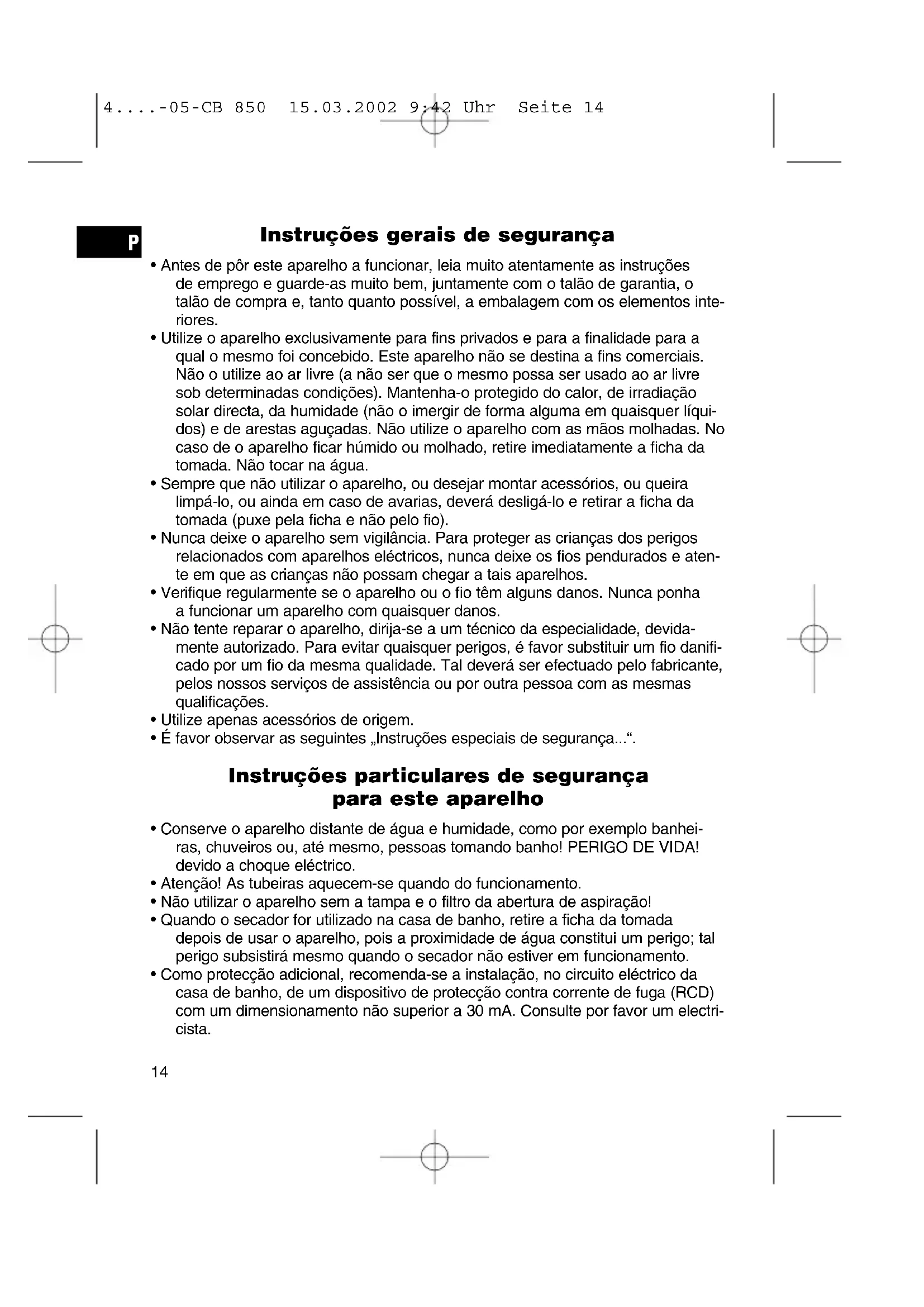 - É favor observar as seguintes „Instruções especiais de segurança...“. Instruções particulares de segurança para este aparelho