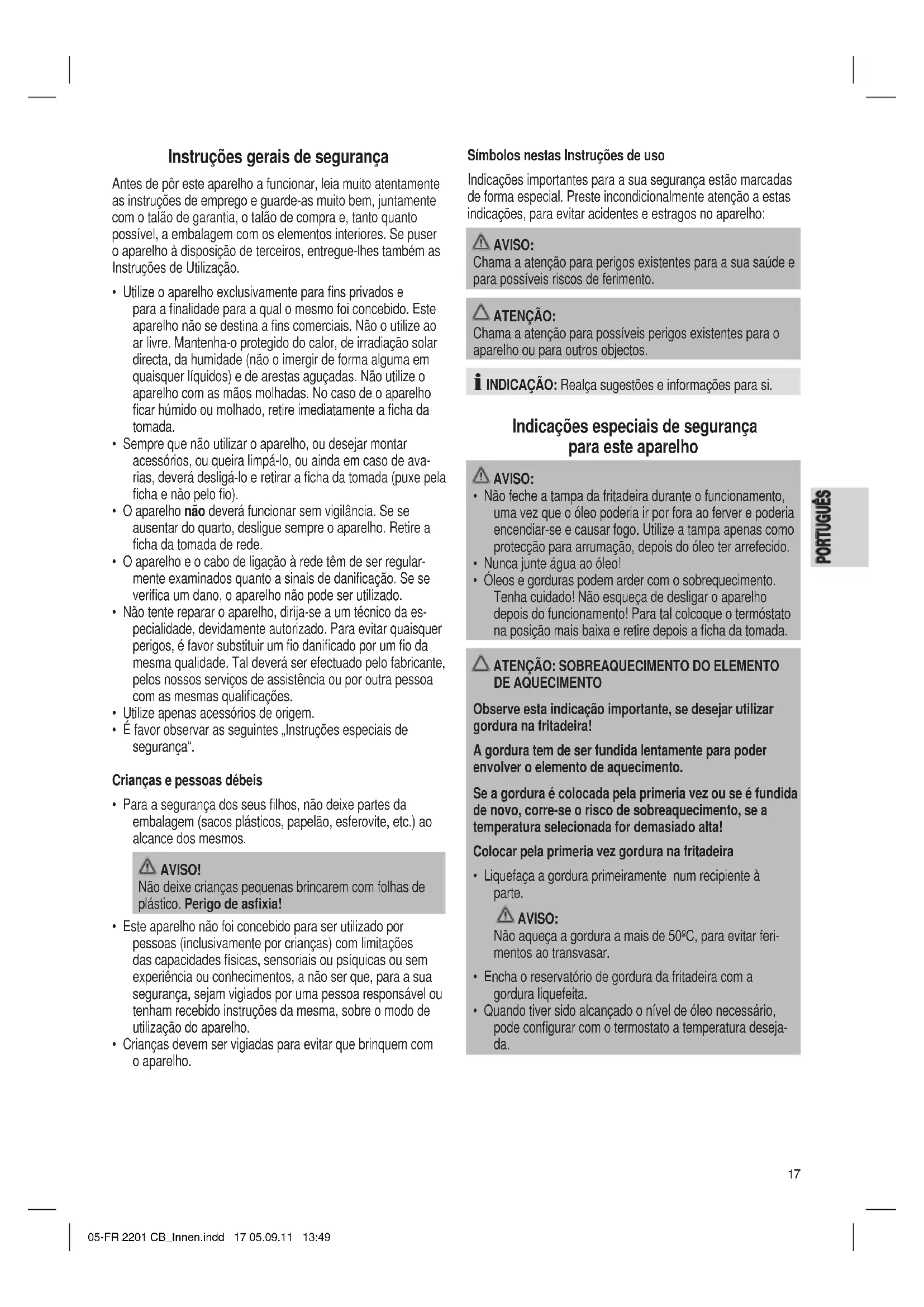 - É favor observar as seguintes „Instruções especiais de segurança“. Crianças e pessoas débeis