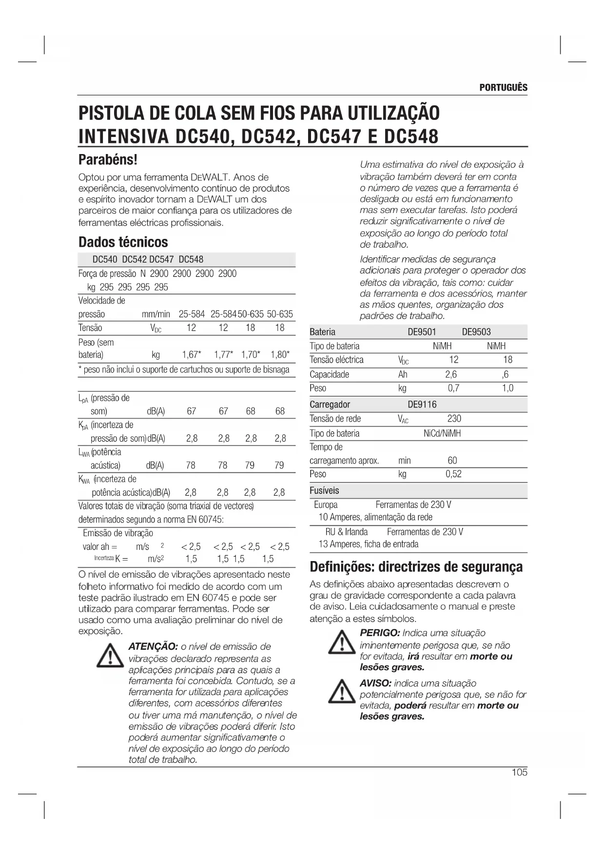 MANUAL DE UTILIZADOR DC548 DEWALT
