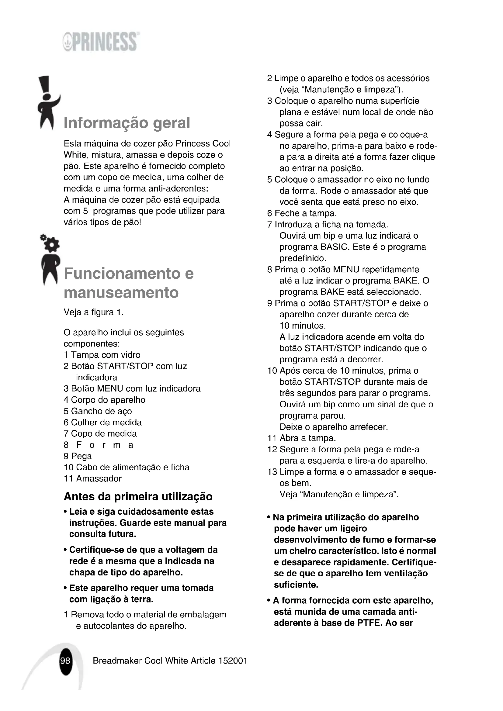 MANUAL DE UTILIZADOR 152001 PRINCESS