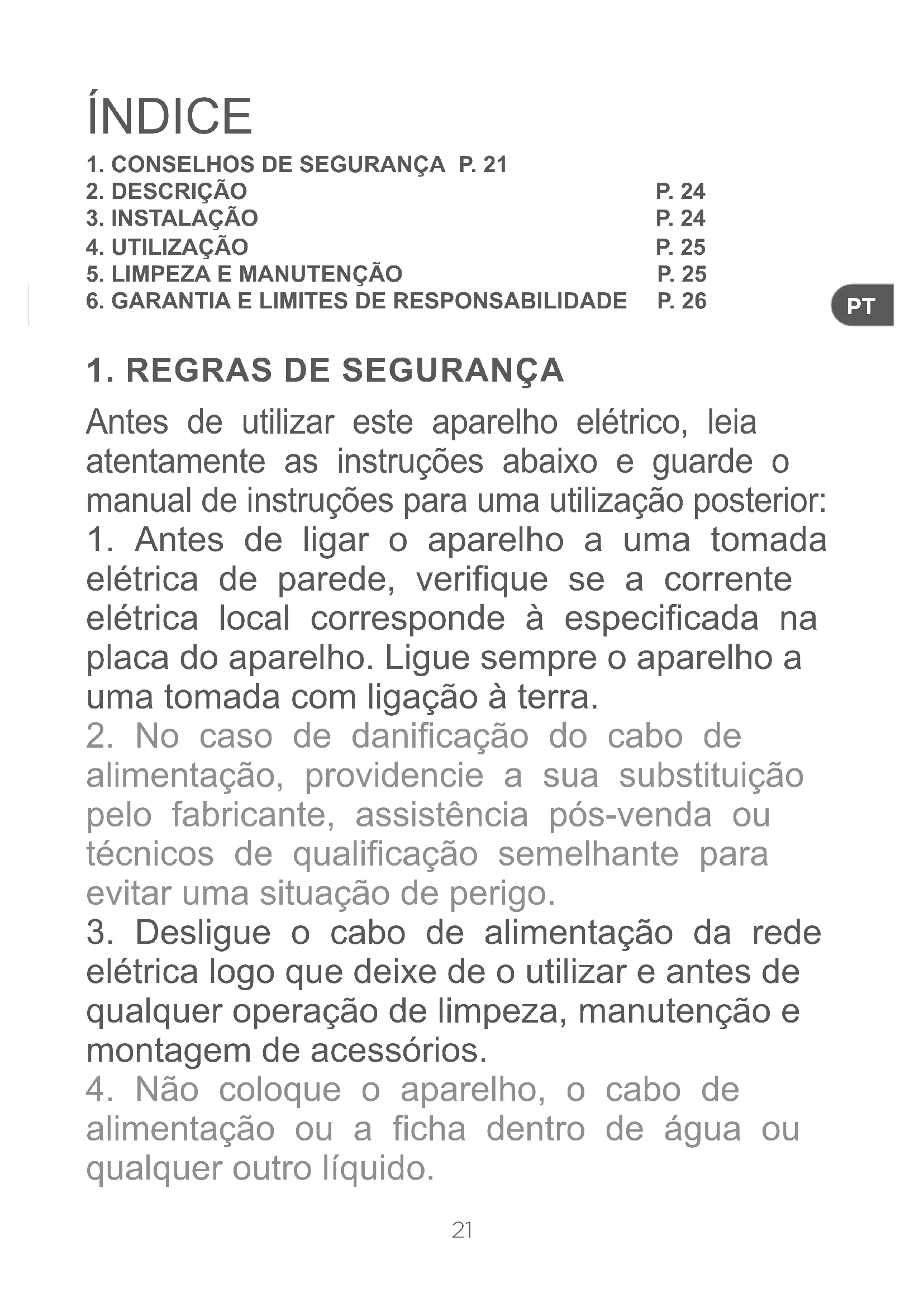 PT5. Este aparelho não se destina a ser colocado em funcionamento através de um temporizador exterior ou através de um sistema de telecomando.