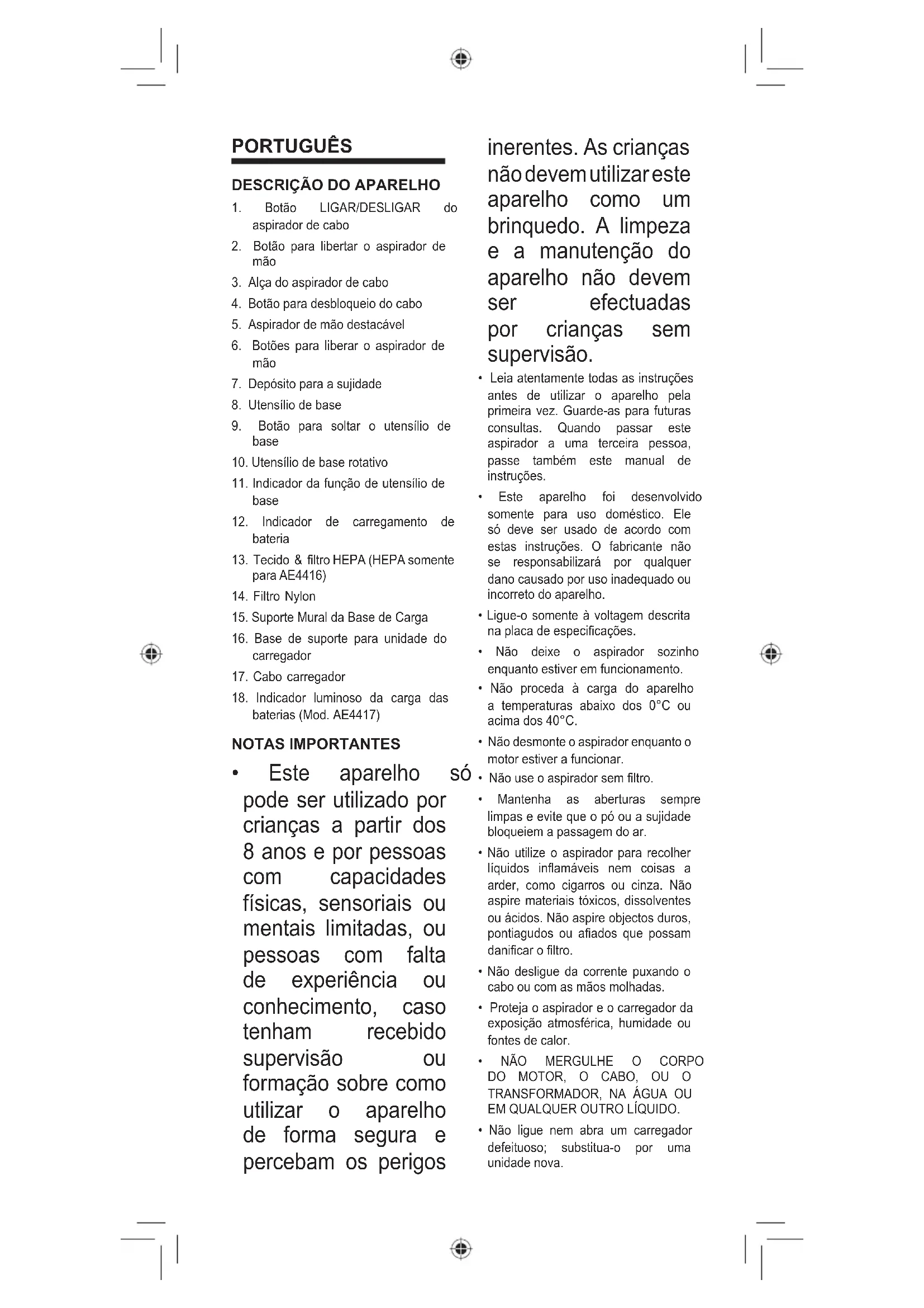 AE4416 - Aspirador UFESA - Manual de utilização gratuito