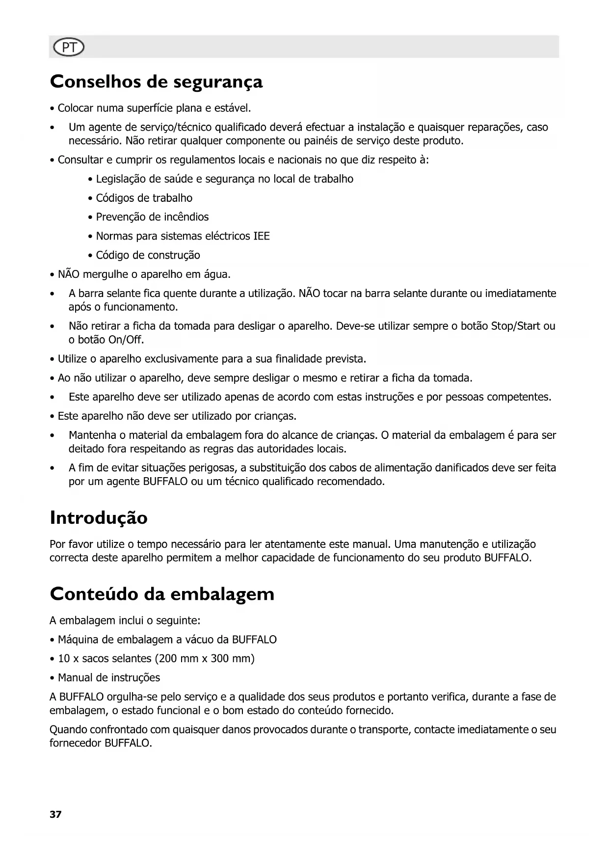 CC770 - Máquinas de embalagem a vácuo BUFFALO - Manual de utilização gratuito