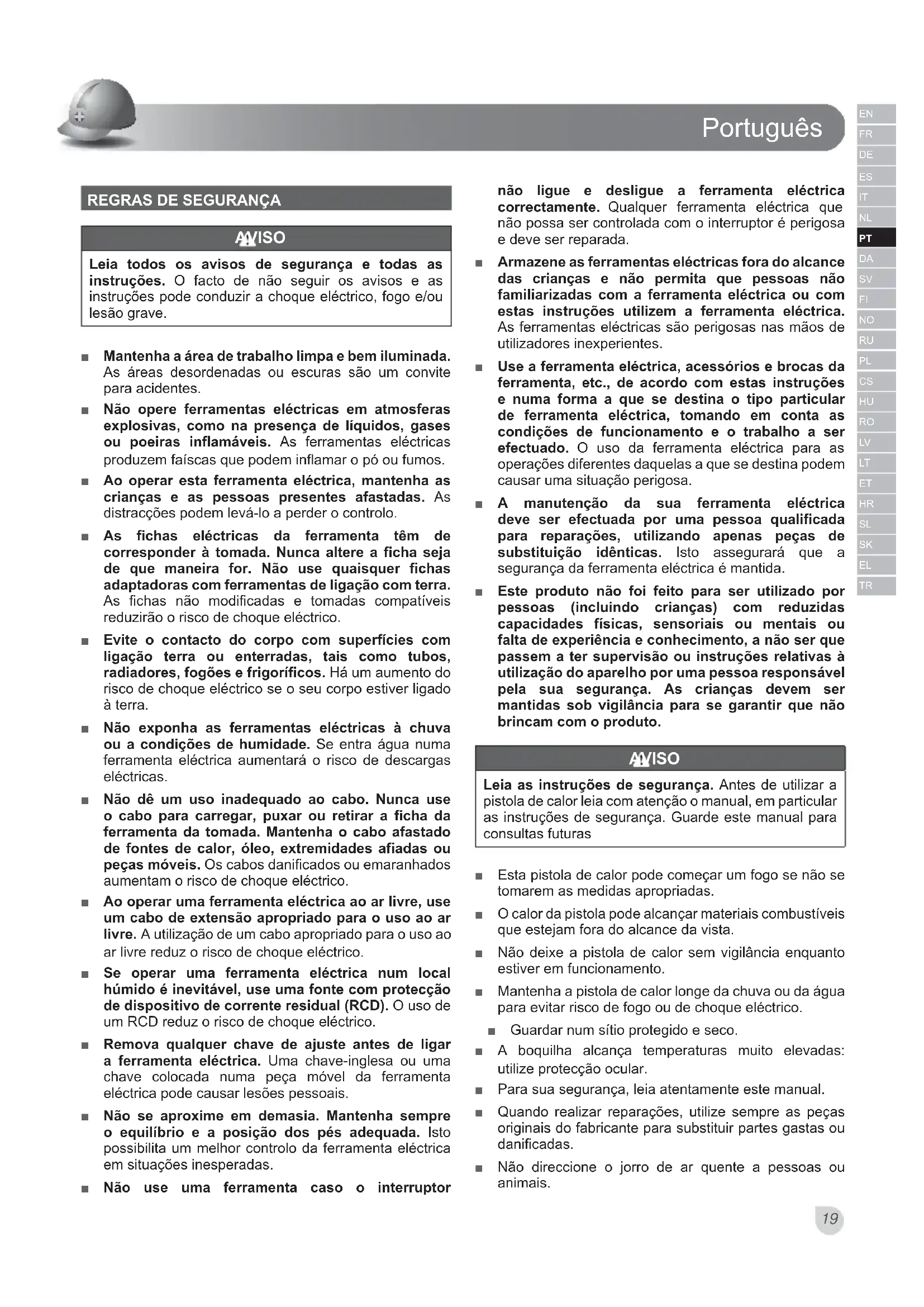 Leia as instruções de segurança. Antes de utilizes a pistola de calor leia com atençao o manual, em particular as instruções de segurança. Guarde este manual para consultas futuras
