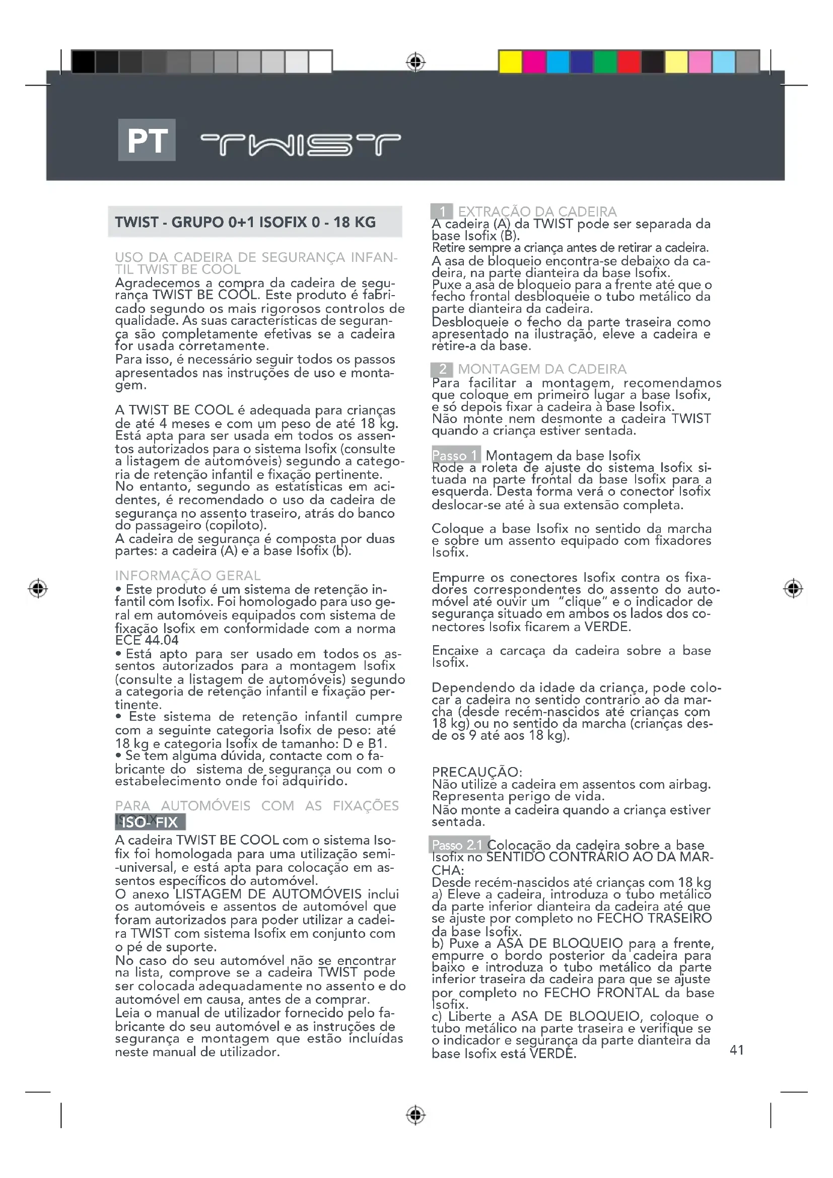 Agradecemos a compra da cadeira de segurarça TWIST BE COOL. Este produit é fabricado quando os mais rigorosos controlos de qualidade. As suas caractéricas de segurarça são Completely efetivas se a cadeira for usability corretamente.