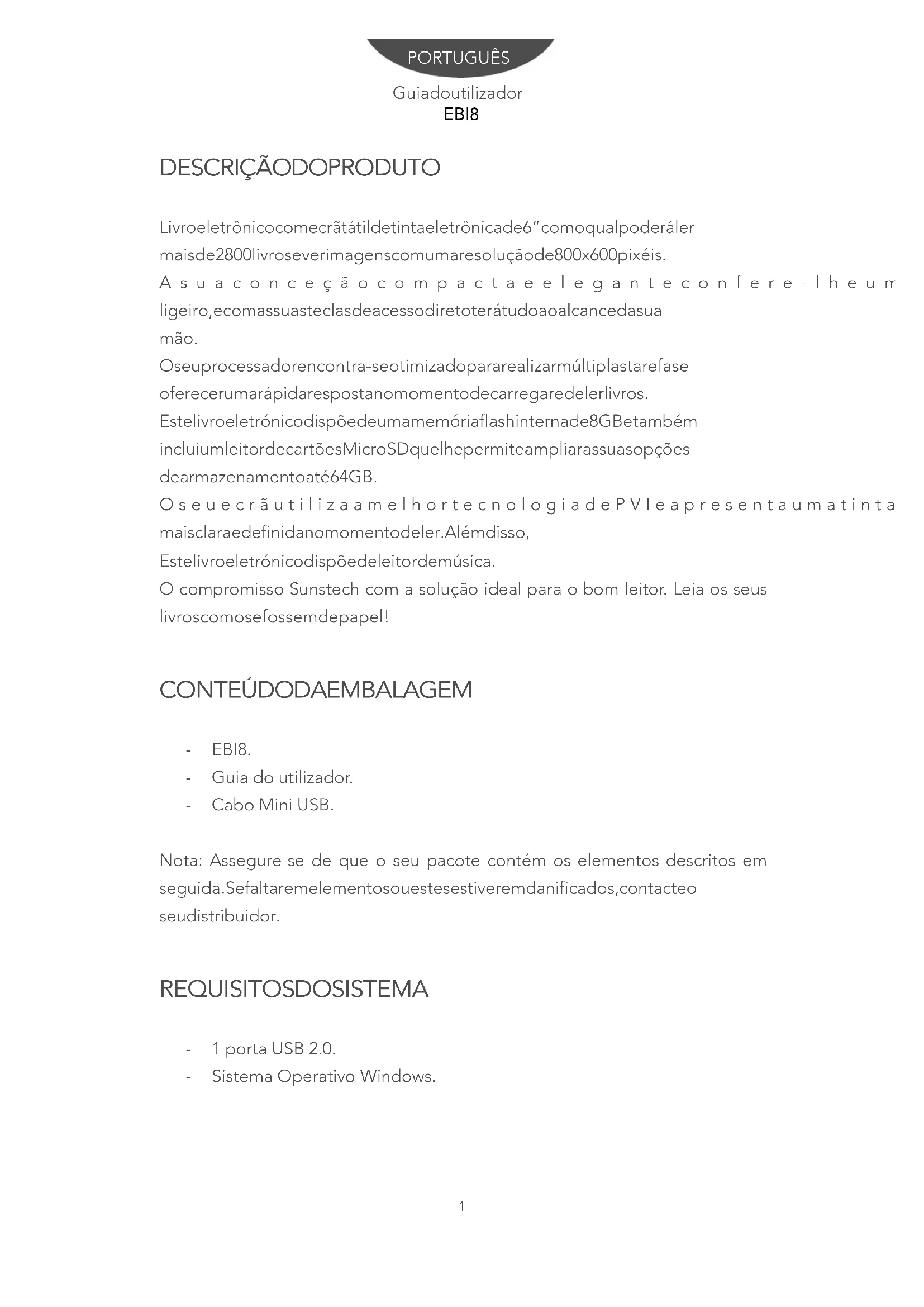 EBI8 - Leitor eletrônico Sunstech - Manual de utilização gratuito