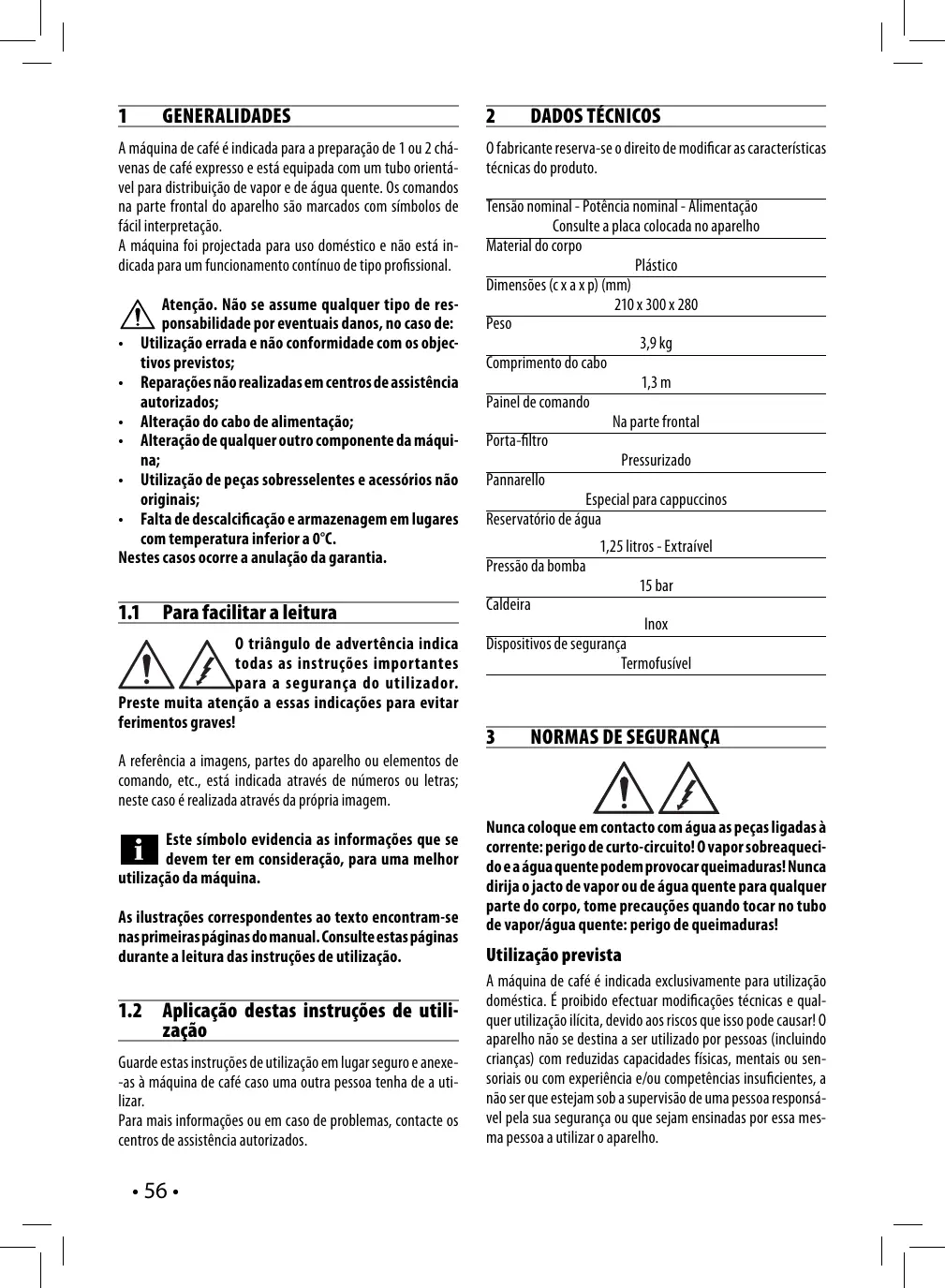 1.2 Aplicação destas instruções de utilização Guarde estas instruções de utilização em lugar seguro e anexe-as à máquina de café caso uma outra pessoa tenha de a utilizar. Para mais informações ou em caso de problemas, contacte os centros de assistência autorizados.