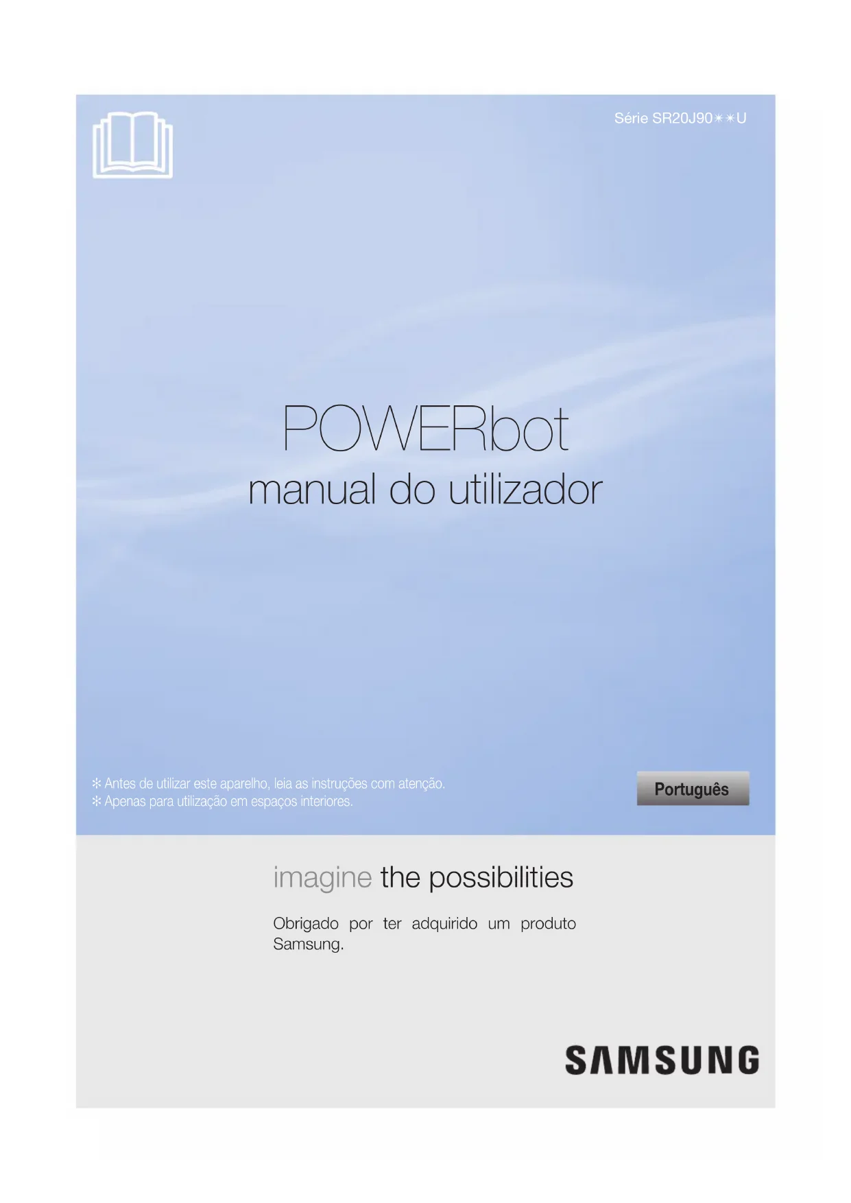 Retire a bateria da ranhura e desligue o conector. Eliminação correcta das baterias deste produto (Aplicável a países cujos sistemas de recolha de baterias sejam separados.) A marca na bateria, manual ou embalagem indica que a bateria do produto não deve ser eliminada com outros resíduos domésticos. Onde marcado, os símbolos químicos Hg, Cd ou Pb indicam que a bateria contém mercúrio, cádmio ou chumbo acima dos níveis de referência da Directiva CE 2006/66.A bateria incorporada no produto não pode ser substituída pelo utilizador. Para obter informações sobre como substituí-la, contacte o seu fornecedor de serviços. Não tente retirar a bateria ou colocá-la no fogo. Não desmonte, esmague nem perfure a bateria. Se pretender eliminar o produto, o local de recolha de resíduos tomará as medidas adequadas para a reciclagem e tratamento do produto, incluindo a bateria. 4_SR2AJ90@@U_PT_00740E-00_EU.indd 22 2015-09-23 오후 1:55:31PORTUGUÊS-23 Anúncio de código aberto O software incluído neste produto contém software de código aberto. Pode obter o código aberto correspondente completo durante um período de três anos depois do último envio deste produto, enviando um e-mail para:oss.request@samsung. com. É igualmente possível obter o código aberto correspondente completo em suporte físico como, por exemplo, um CD-ROM; será cobrado um preço mínimo. O URL seguinte http://opensource.samsung.com/opensource/VR9000H/seq/0 conduz à página de transferência do código aberto disponibilizado e à informação da licença do código aberto, conforme relacionado com este produto. Esta oferta é válida para qualquer pessoa que receba esta informação. Especificações Classificação Artigo Informações detalhadas Especificações mecânicas (POWERbot) Dimensões (Profundidade x Altura x Comprimento) 378 mm x 135 mm x 362 mm Peso 4,3 kg Sensor Reconhecimento da forma do tecto (Visionary mapping plus™) Tipo de botão do POWERbot Tipo de toque Especificações de energia Tensão de alimentação 100-240 V~, 50 Hz/60 Hz Consumo de energia 80 W Especificações da bateria Iões de lítio 21,6 V/ 39 Wh Limpeza Tipo de carregamento Carregamento automático/manual Modo de limpeza Automática, Pontual, Manual Tempo de carregamento Aproximadamente 160 minutos Tempo de limpeza Aproximadamente 30 minutos (Modo normal/ Com base em soalho rígido) Os tempos de carregamento e de limpeza podem variar consoante as condições de utilização. Este aspirador está em conformidade com as seguintes normas. - Directiva de compatibilidade electromagnética: 2004/108/CEE - Directiva de baixa tensão: 2006/95/CE 4_SR2AJ90@@U_PT_00740E-00_EU.indd 23 2015-09-23 오후 1:55:31Se tem algumas dúvidas ou comentários sobre os produtos Samsung, contacte por favor a nossa linha de apoio a clientes Samsung. 80820-SAMSUNG (726-7864) www.samsung.com 4_SR2AJ90@@U_PT_00740E-00_EU.indd 24 2015-09-23 오후 1:55:31Serie SR20J90✴✴U POWERbot Benutzerhandbuch imagine the possibilities Vielen Dank, dass Sie sich für ein Gerät von Samsung entschieden haben. Deutsch ✻ Lesen Sie die Anweisungen sorgfältig durch, ehe Sie das Gerät in Betrieb nehmen.✻ Nur zum Einsatz in geschlossenen Räumen geeignet. 5_SR2AJ90@@U_DE_00740E-00_EU.indd 1 2015-09-23 오후 2:00:26DEUTSCH-02 Inhalt