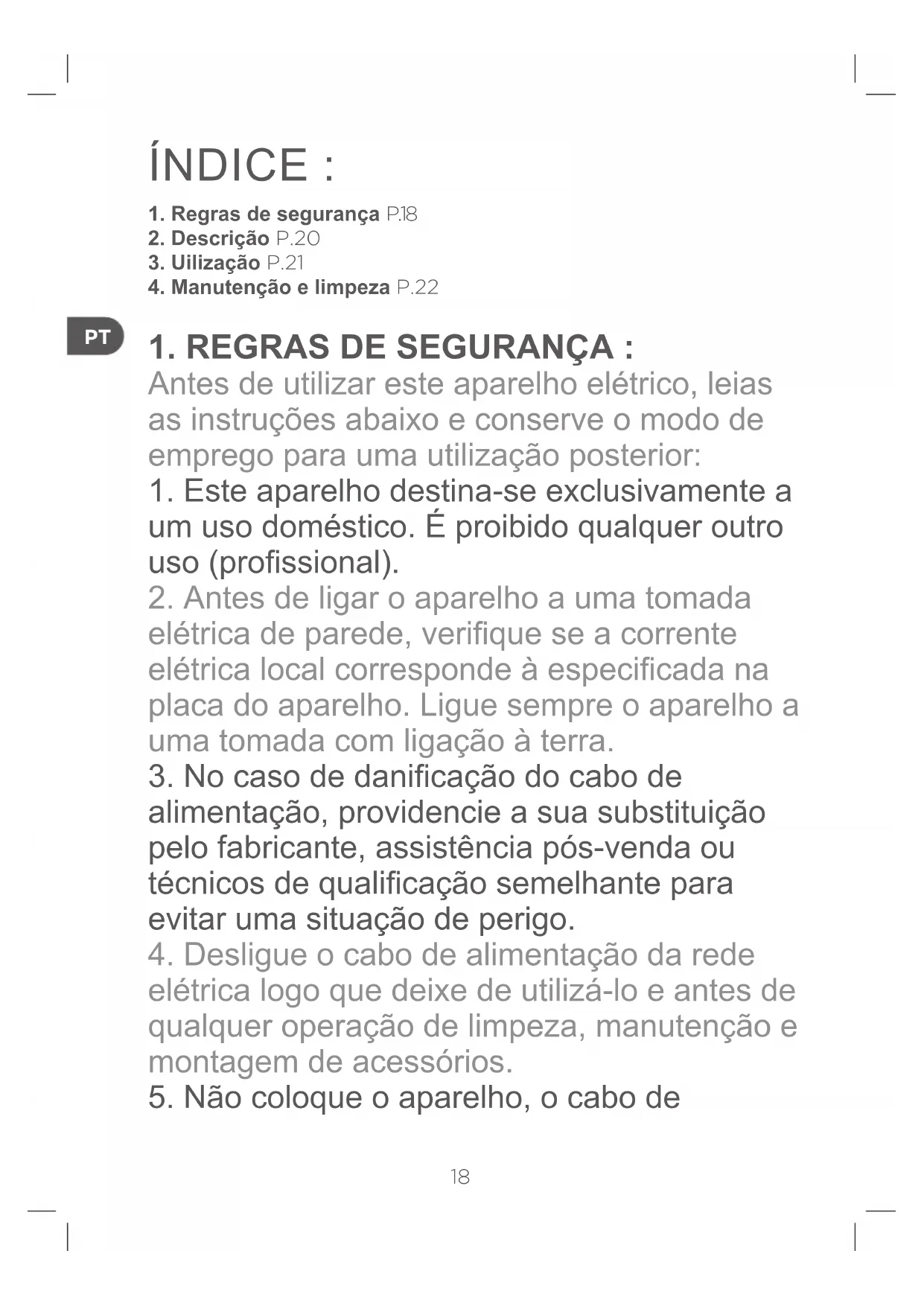 Antes de utilizar este aparelho elétrico, leias as instruções abaixo e conserve o modo de emprego para uma utilização posterior:
