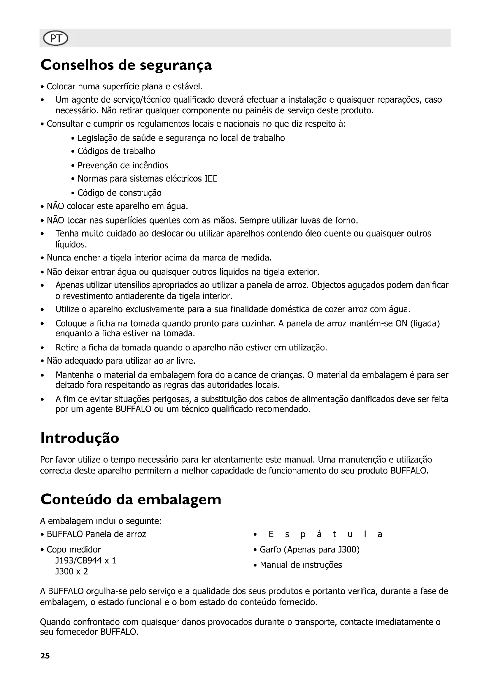 J300 - Panela de arroz BUFFALO - Manual de utilização gratuito