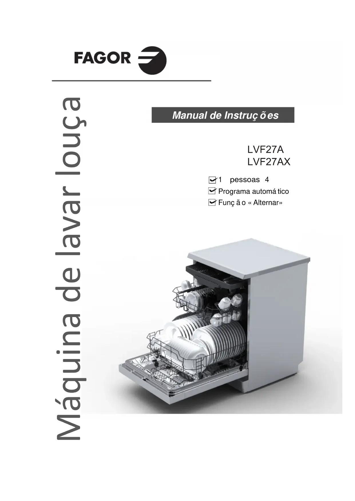 Manual de Instruções LVF27A LVF27AX Máquina de lavar louça Programa automático Função «Alternar»Caro Cliente, Por favor, leia atentamente este manual antes de utilizar a sua máquina de lavar louça. Ele ajudará a utilizar e manter o seu equipamento corretamente. Guarde-o para referência futura. Entregue-o a qualquer eventual proprietário futuro do aparelho.
