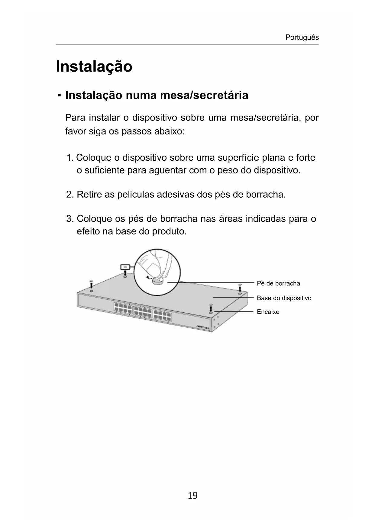 Instalação numa mesa/secretária Para instalar o dispositivo sobre uma mesa/secretária, por favor siga os passos abaixo: