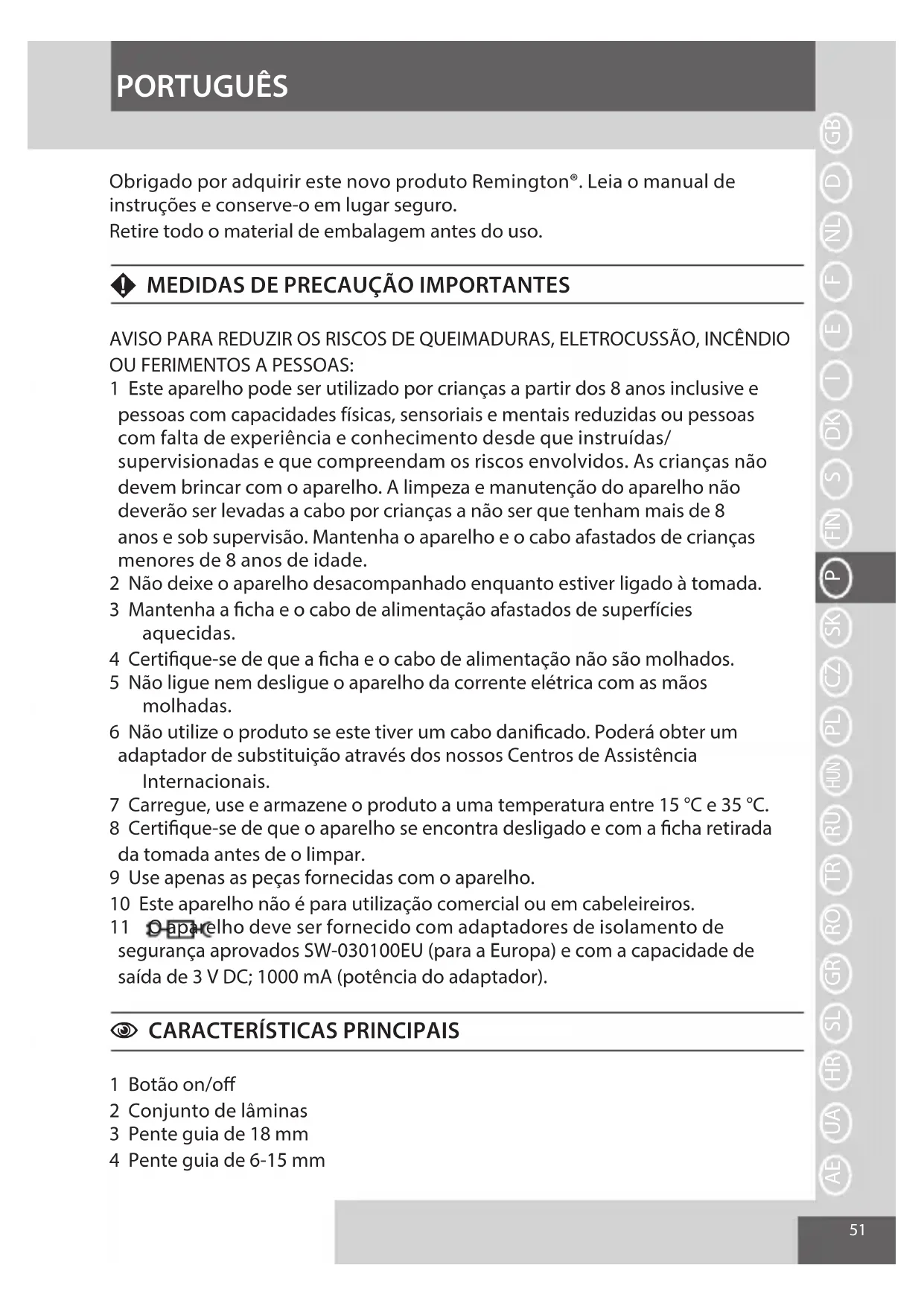 Obrigo por adquirir este novo produit Remington. Leia omanual de instruções e conserve-o em lugar seguro.