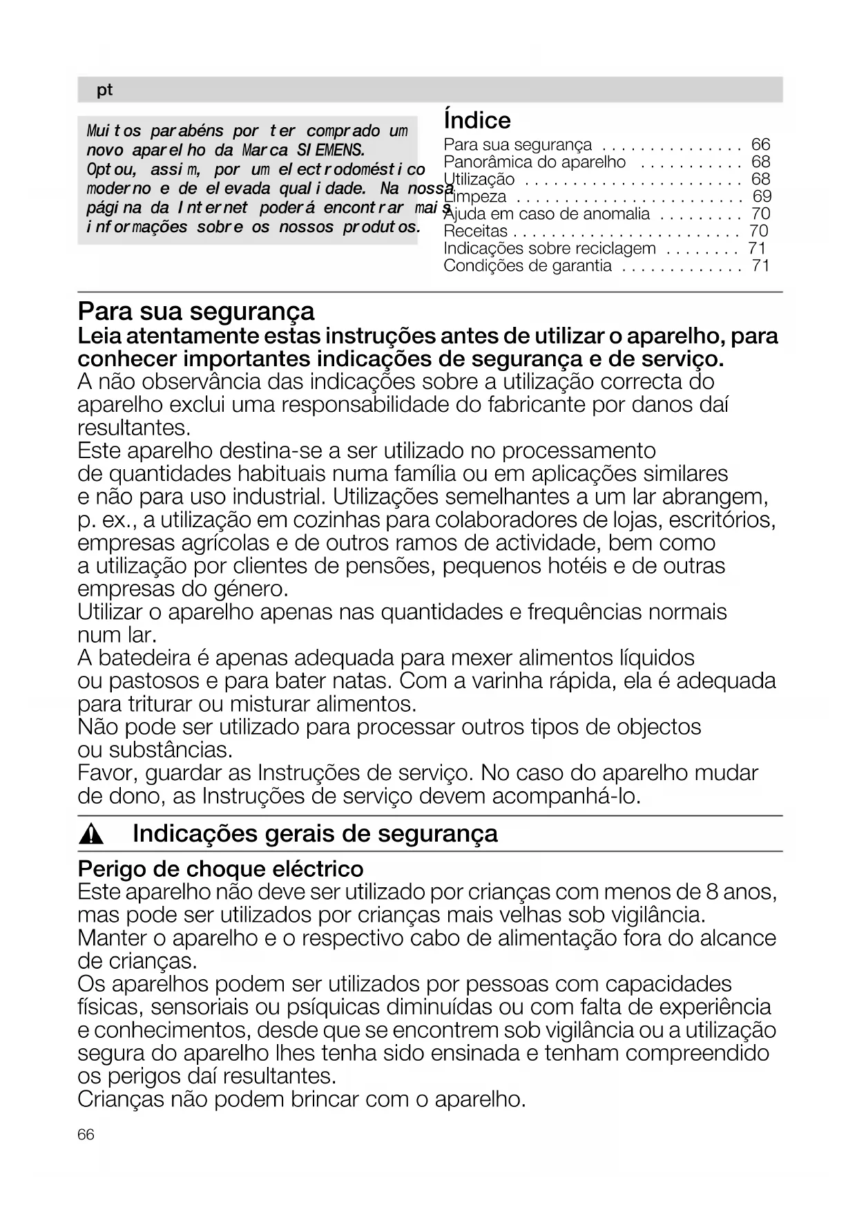 - Nos reservamos el derecho de introducir modificaciones.66 Índice Para sua segurança p. 66