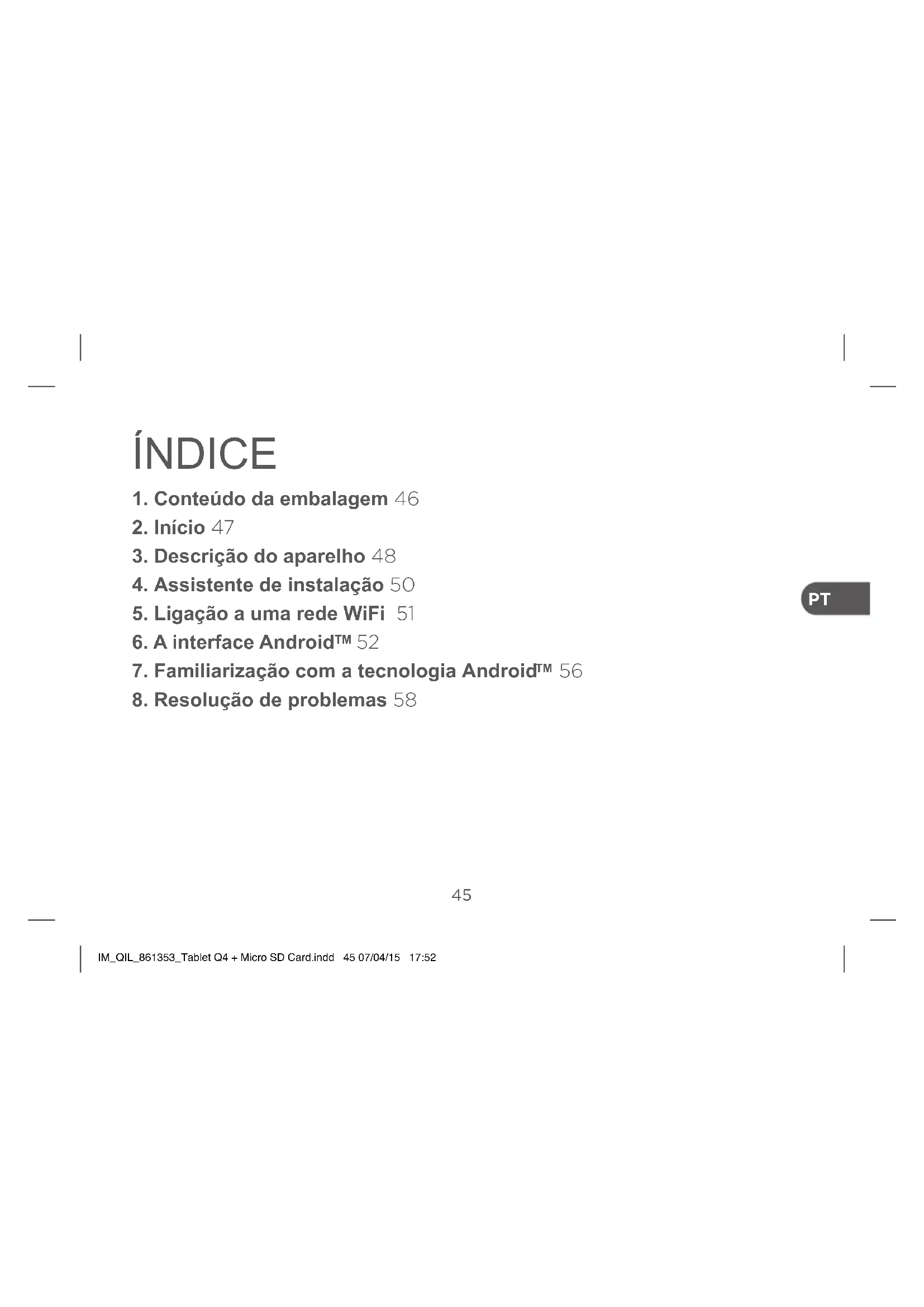 1. Conteúdo da embalagem 46