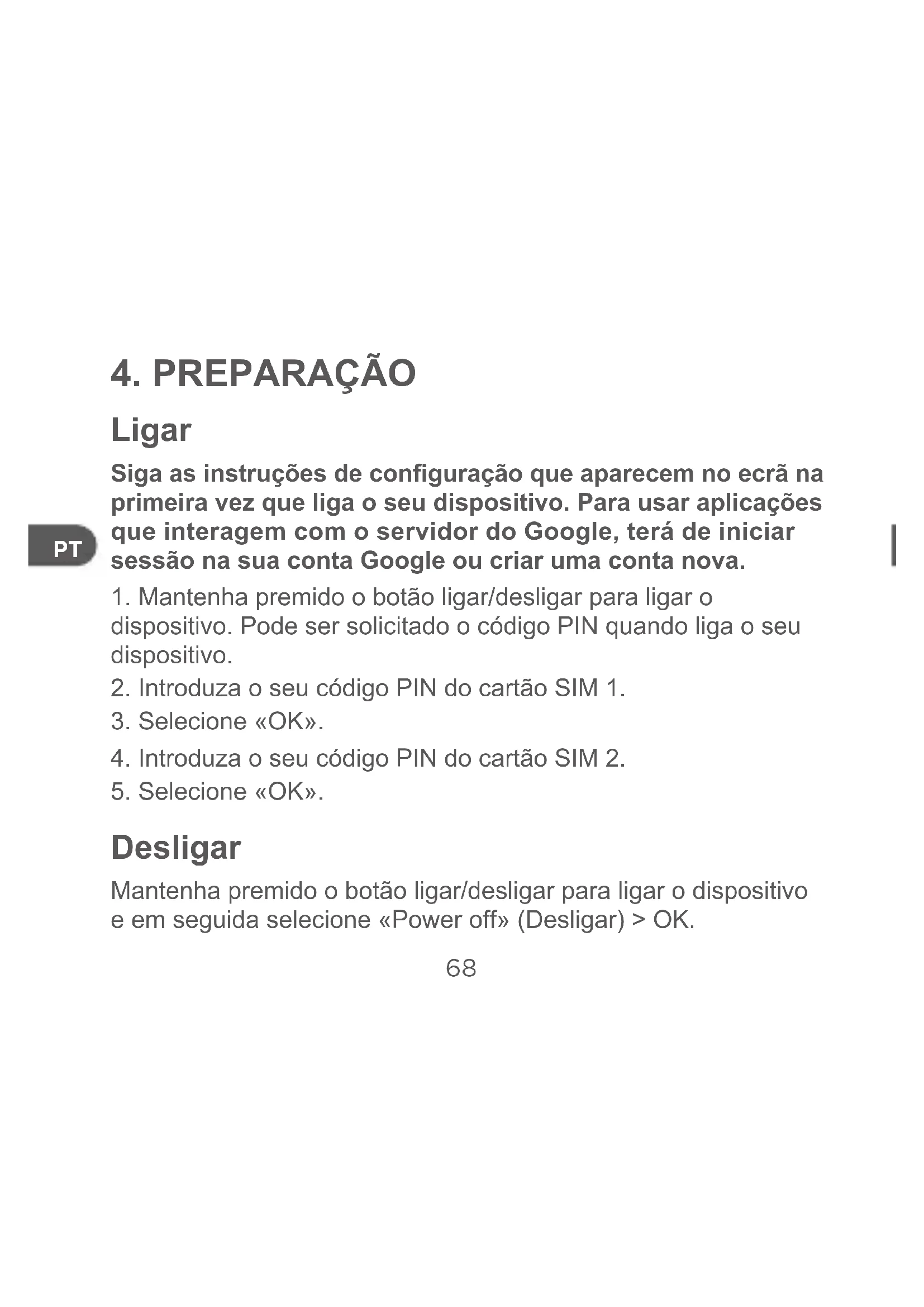 dispositivo. Pode ser solicitado o código PIN quando liga o seu dispositivo.