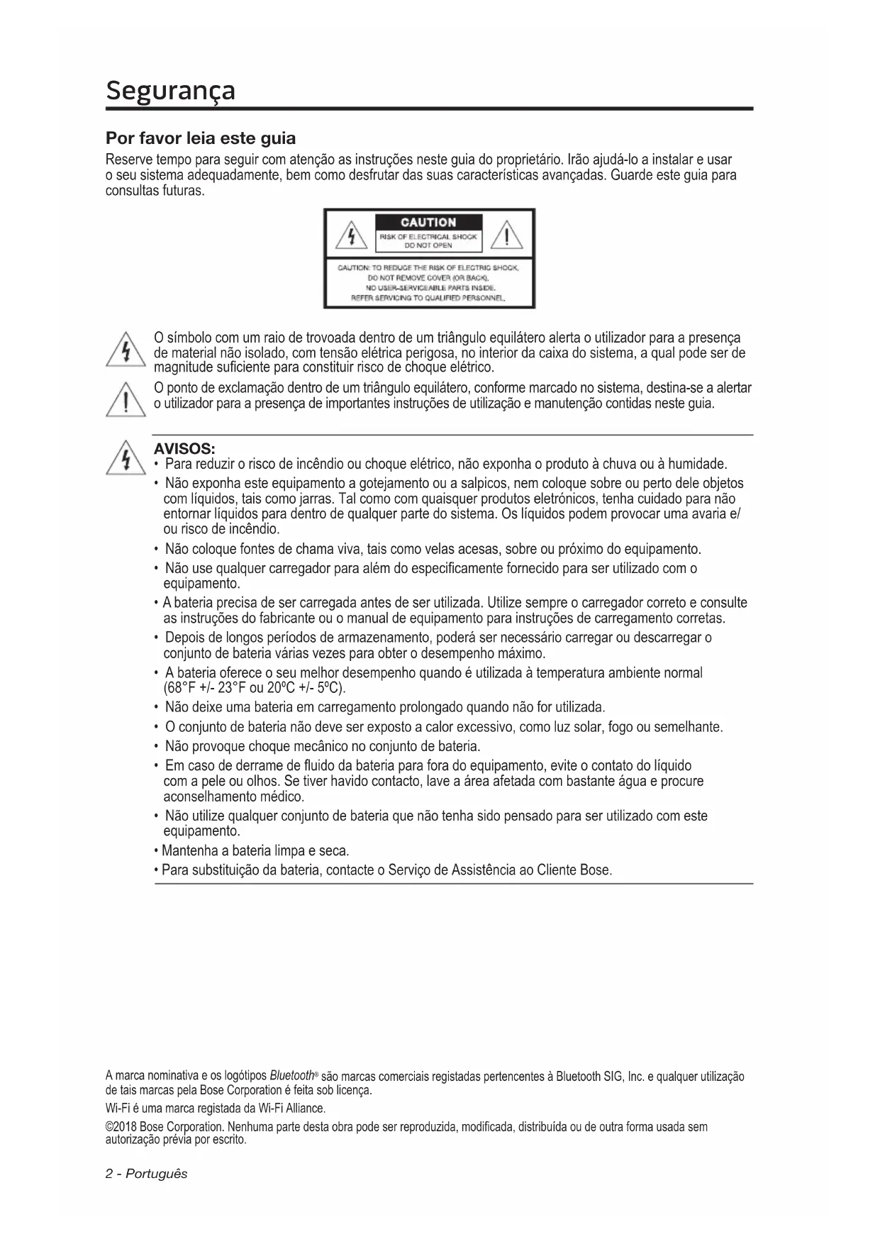 ©2018 Bose Corporation. Nenhuma parte这其中a obra pde ser reproduzida, modificada, distribuia ou de outra forma usada sem autorização prévia por escrito.