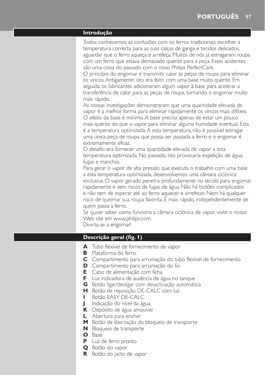 GC-9230 - Ferro a vapor PHILIPS - Manual de utilização gratuito