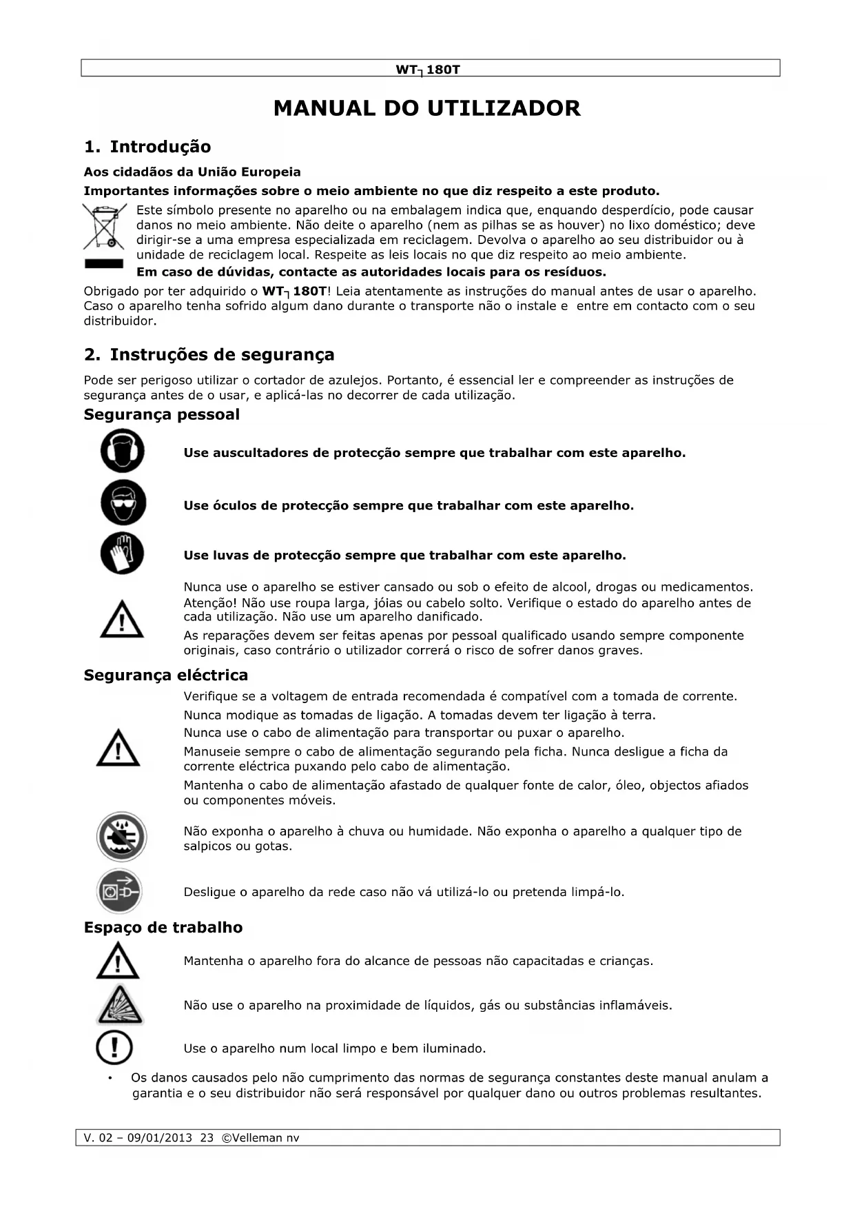 Use this aparelho apenas com os acessórios originais. A Velleman NV não está responsavellos danos ou lesões causadas pelo uso (indevido) do aparelho. Para mais informação sobre este produits, visite a minha网页 www.perel.eu. Podem alterar-se as espécicações e as instruções destemanual sem征求意见 prévio.