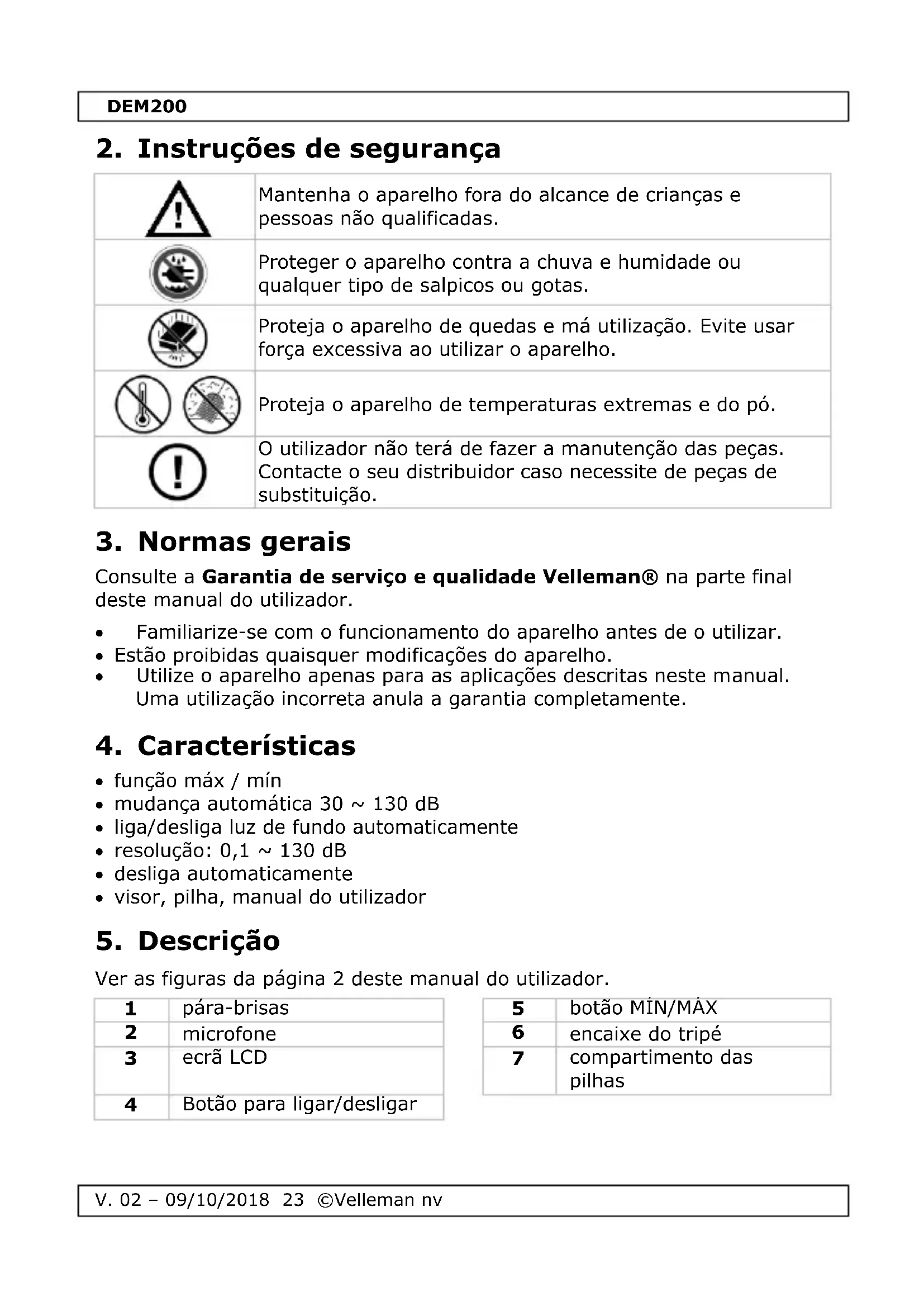 Encontre gratuitamente o manual do aparelho DEM200 VELLEMAN em formato PDF.