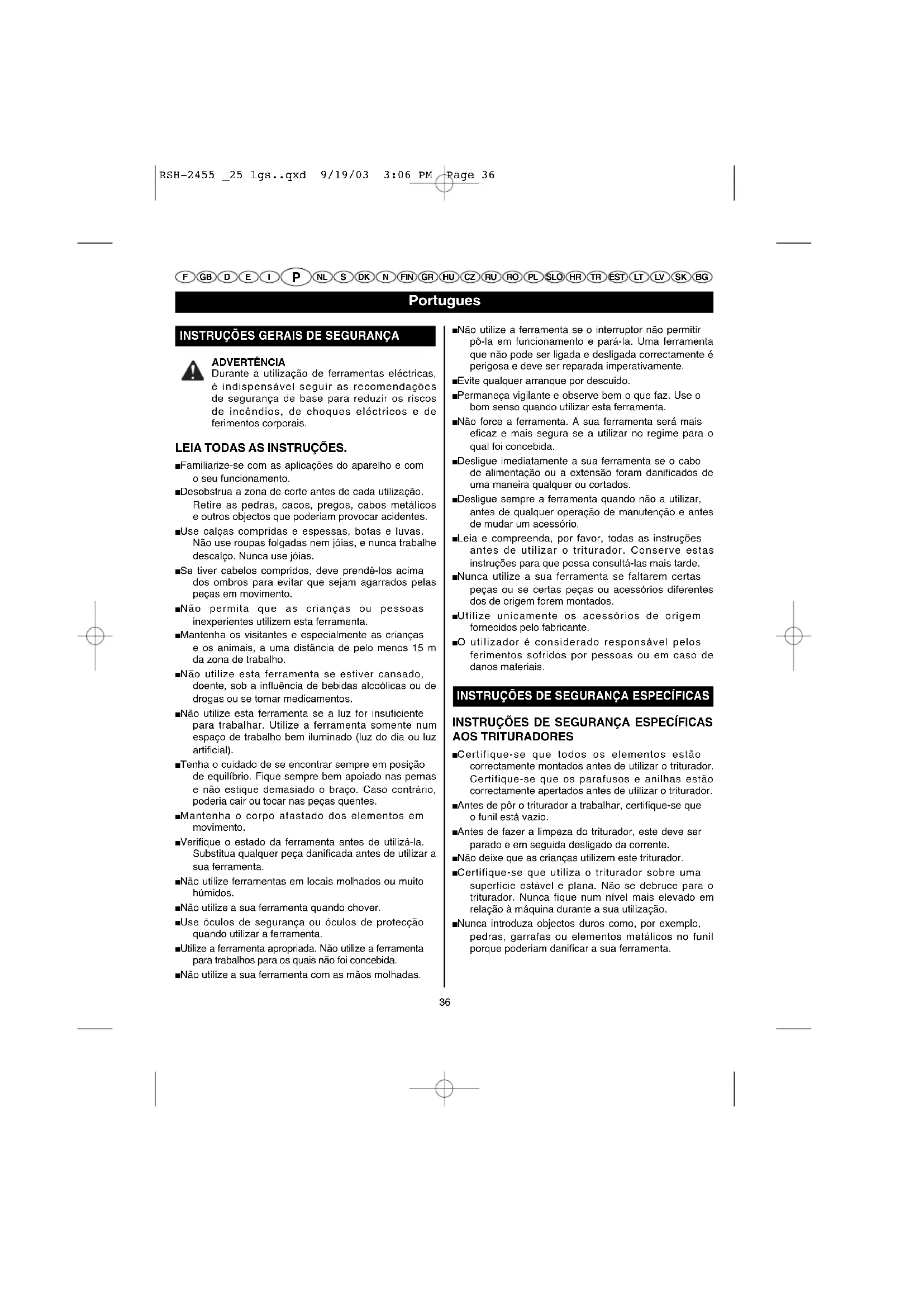 Leiae compreenda, por favor, todas as instruções antes de'utilizar o triturador. Conserve estas instruções para que possa consulha-las mais tarde.