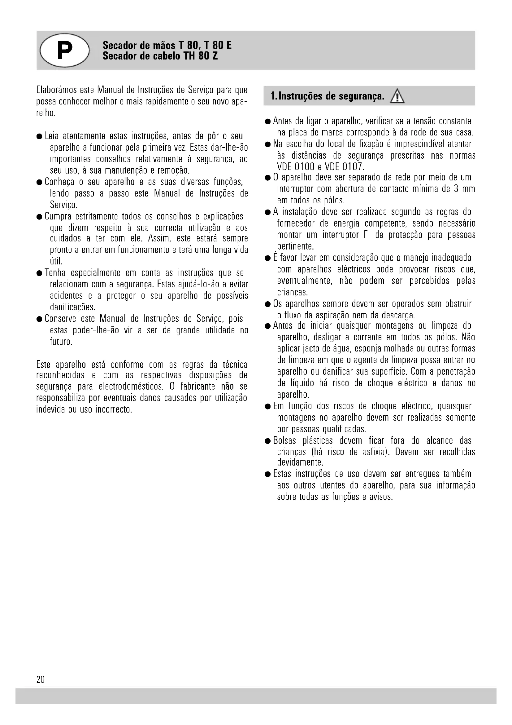 - Conserve este Manual de Instruções de Serviço, quando estas poder-lhe-ão vir a ser de grande'utilidade no futuro.