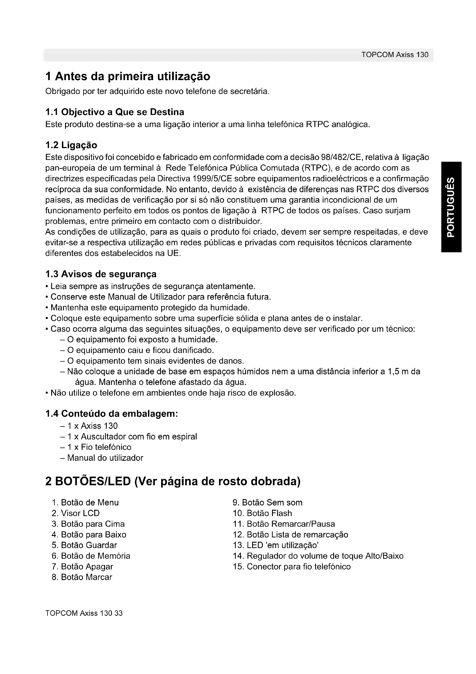 MANUAL DE UTILIZADOR Axiss 130 TOPCOM