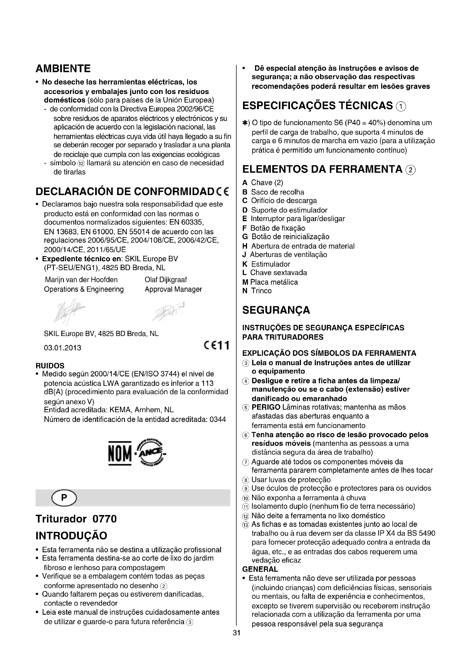 - Processo técnico em: SKIL Europe BV (PT-SEU/ENG1), 4825 BD Breda, NL