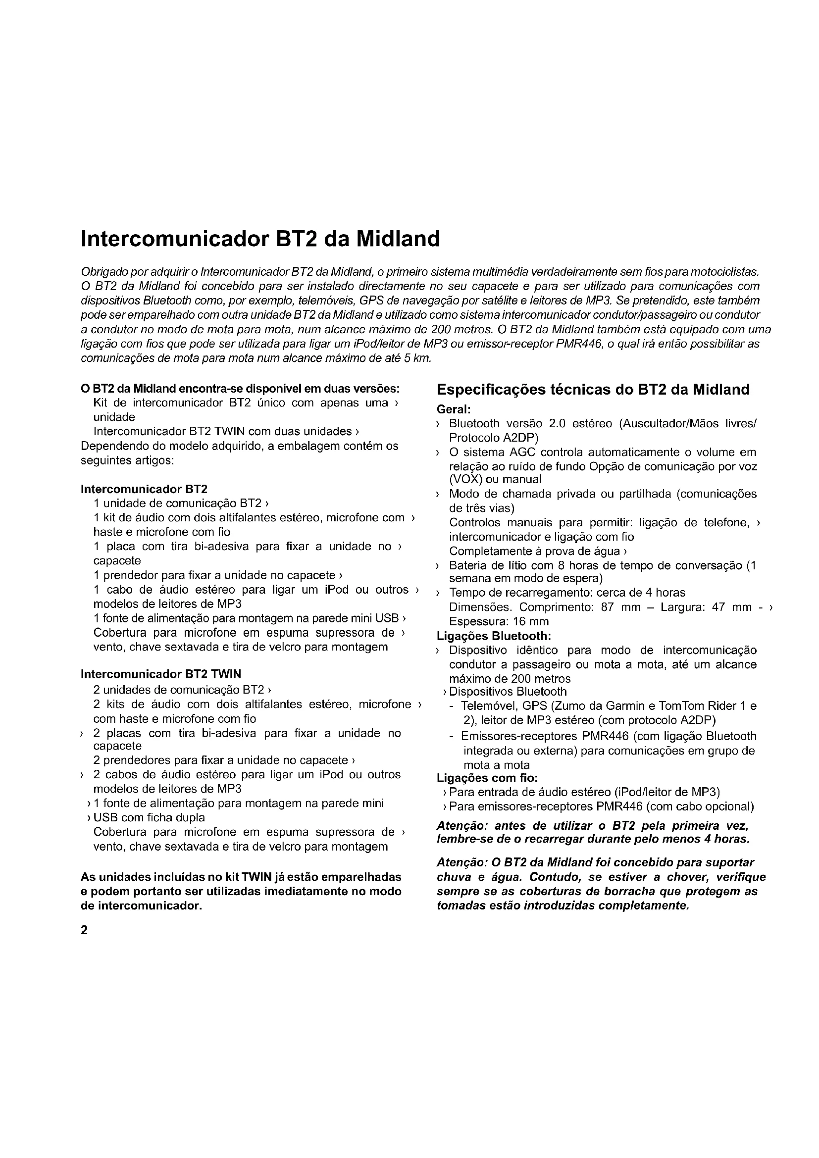 MANUAL DE UTILIZADOR BT2 MIDLAND