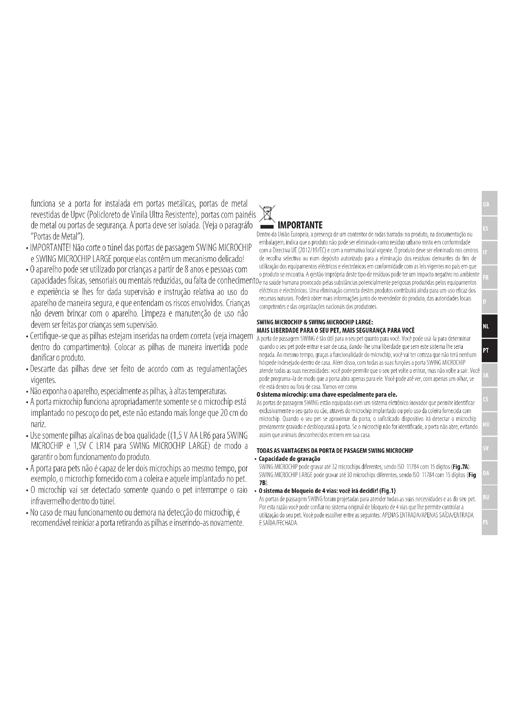 - No caso de mau funcionamento ou demora na detecção do microchip, é recomendável reiniciar a porta retirando as pilhas e inserindo-as novamente.