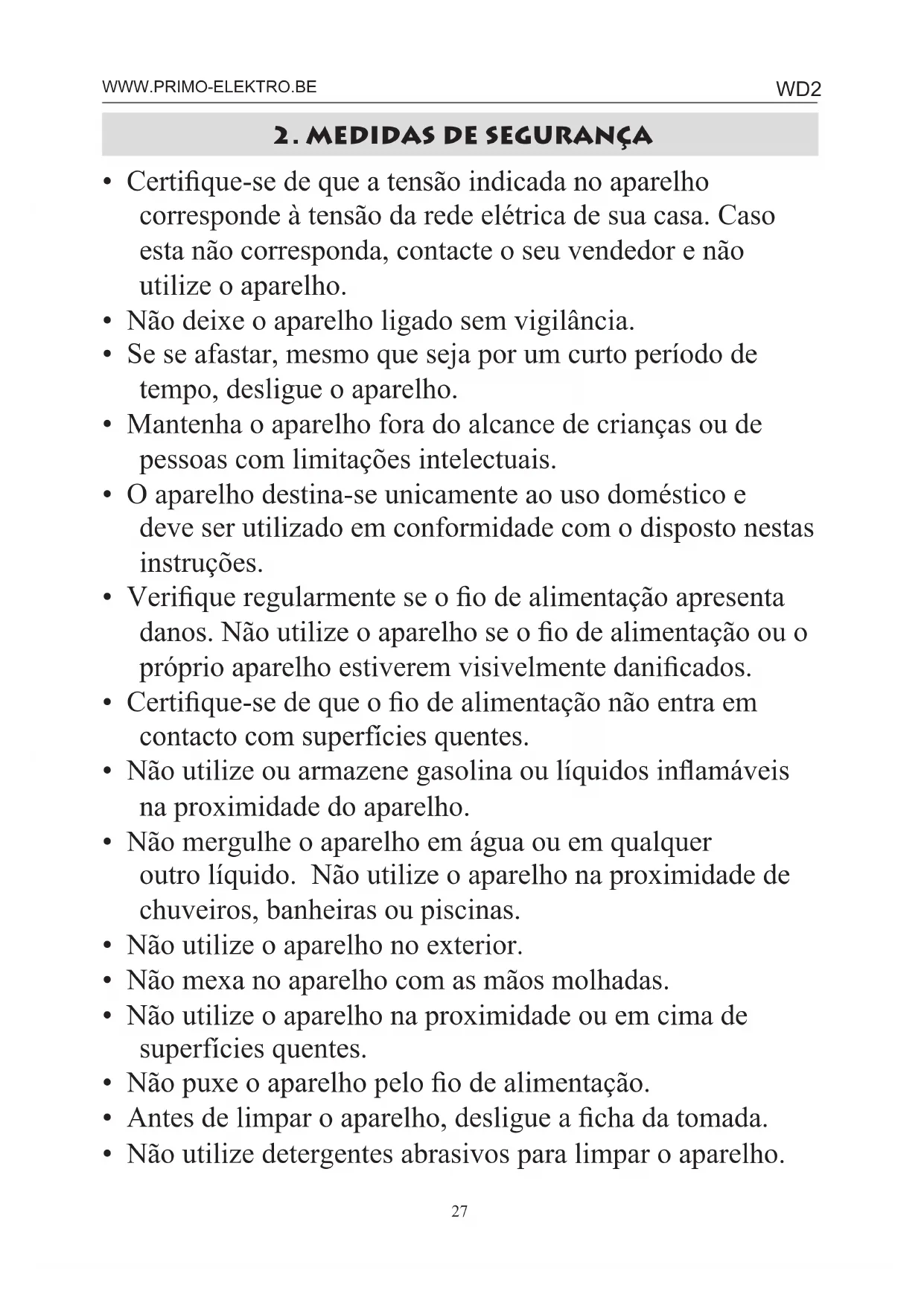 MANUAL DE UTILIZADOR WD2 PRIMO
