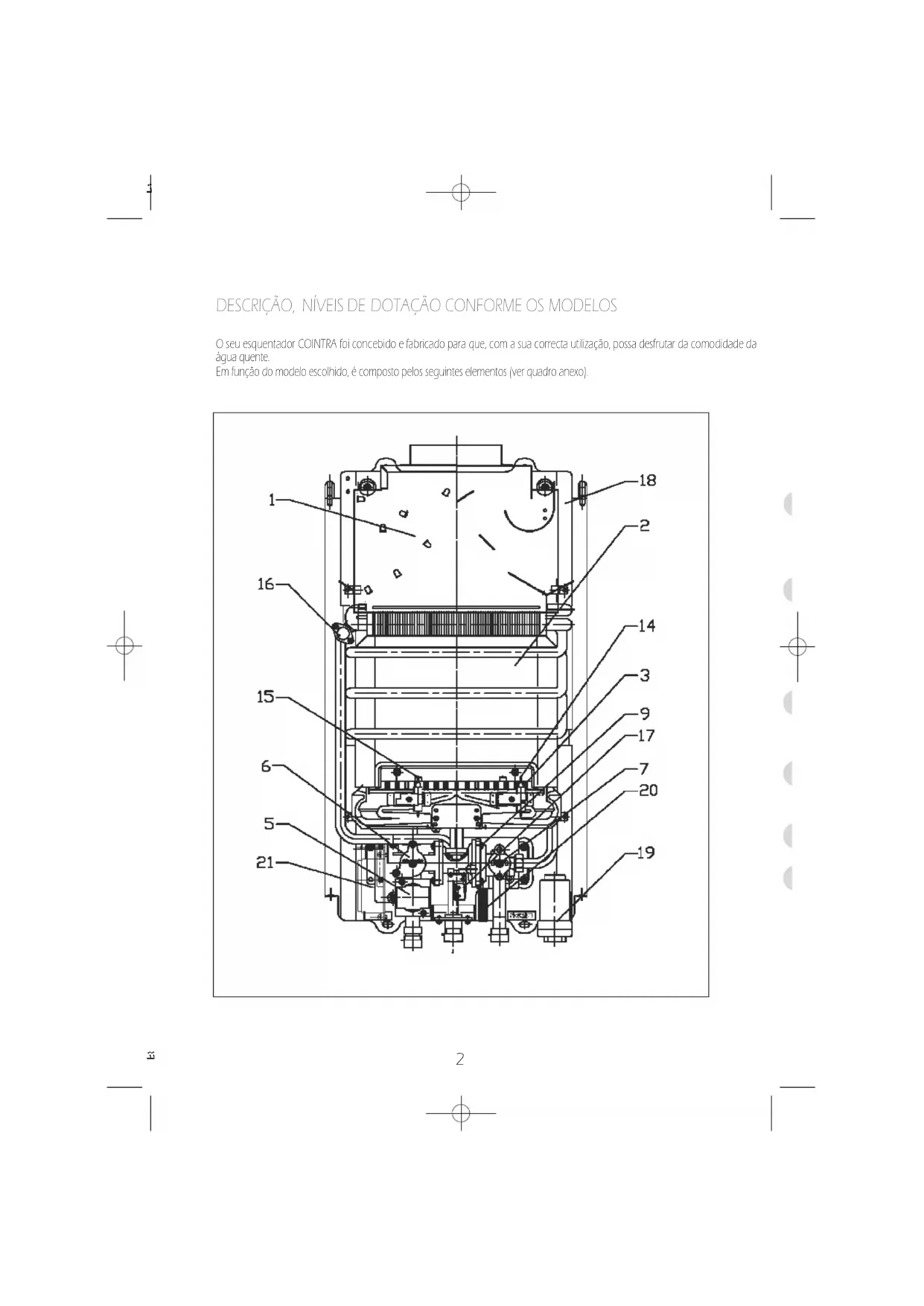 O seu esquentador COINTRA foi concebido e fabricado para que, com a sua correcta utilização, possa desfrutar da comodidade da água quente. Em função do modelo escolhido, é composto pelos seguintes elementos (ver quadro anexo).3