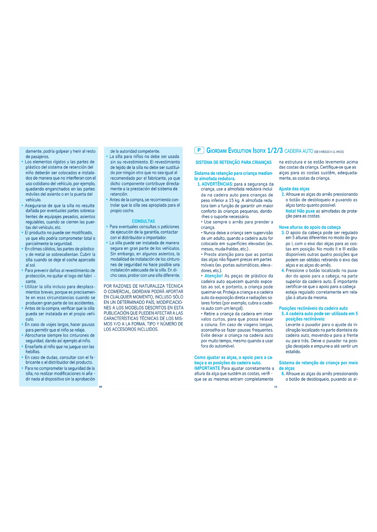 Evolution 123 Isofix - Cadeira de carro Giordani - Manual de utilização gratuito
