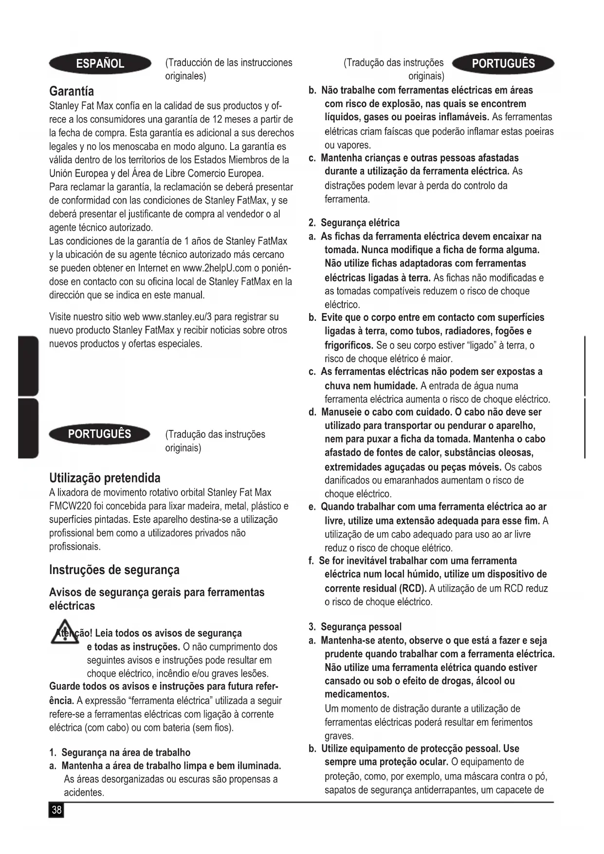 Os termos e condições da garantia de 1 ano da Stanley Fat Max e a localização do agente de reparação autorizado mais próximo pode ser obtido na Internet em www.2helpU.com ou contactando uma filial da Stanley Fat Max, cuja morada está indicada neste manual.