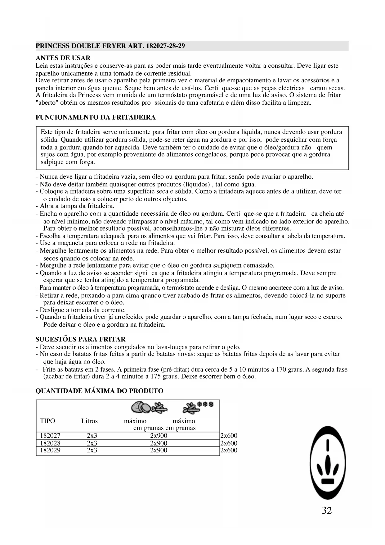 Double 182027 - Fritadeira PRINCESS - Manual de utilização gratuito